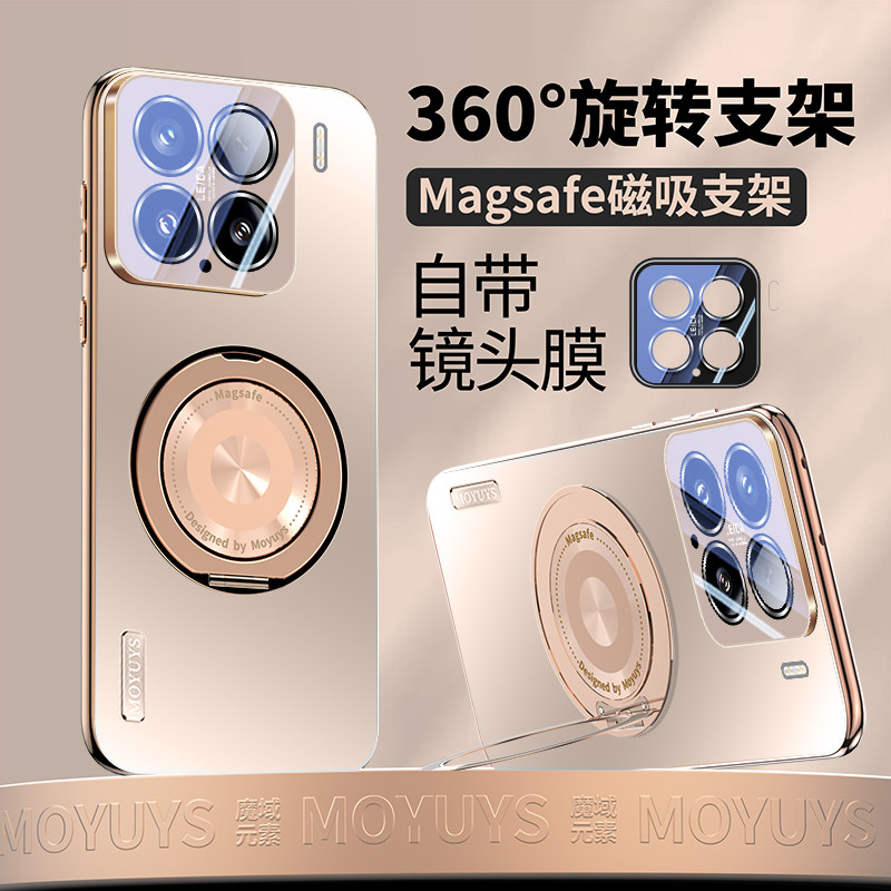 适用小米15手机壳14新款15pro磁吸支点支架mi14pro镜头全包防摔简约15 por男女高级感小众磨砂奢华电镀支架软