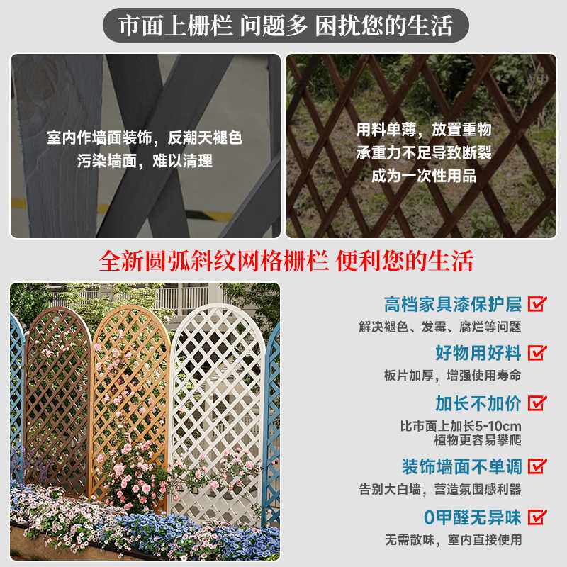 网格防腐木栅栏户外屏风室外庭院隔断木围栏实木墙上植物爬藤花架