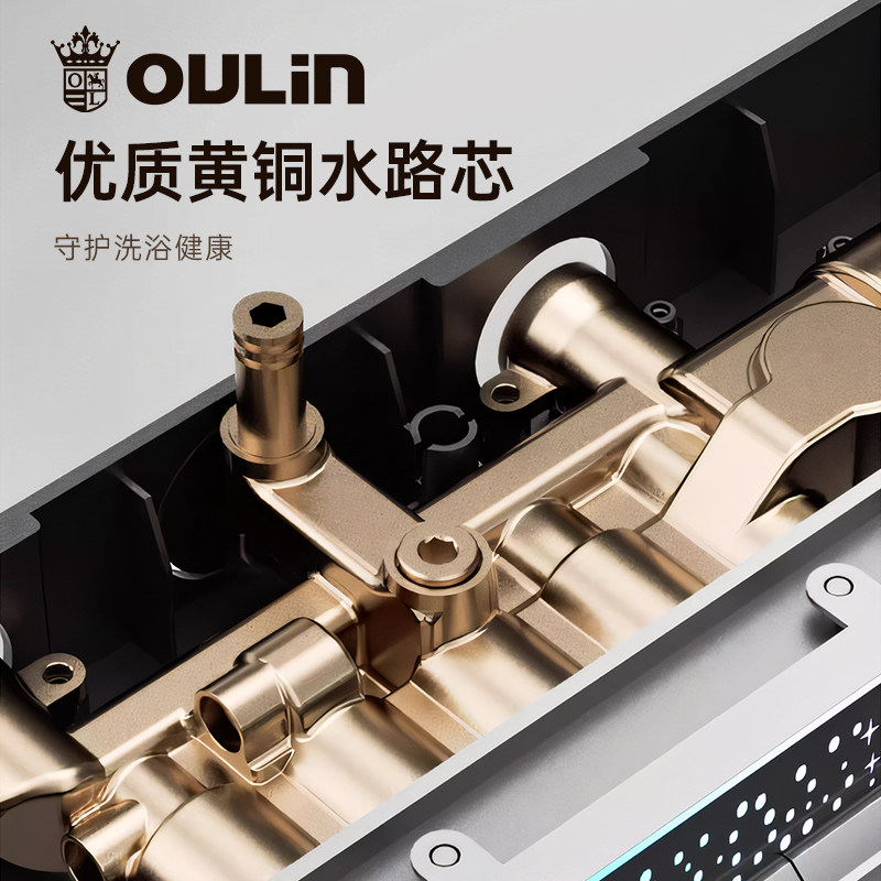 欧琳钢琴键恒温卫浴家用淋浴器淋浴花洒套装大顶喷枪灰色沐浴花洒