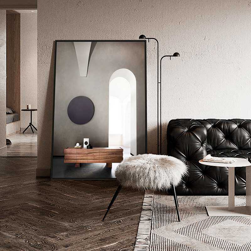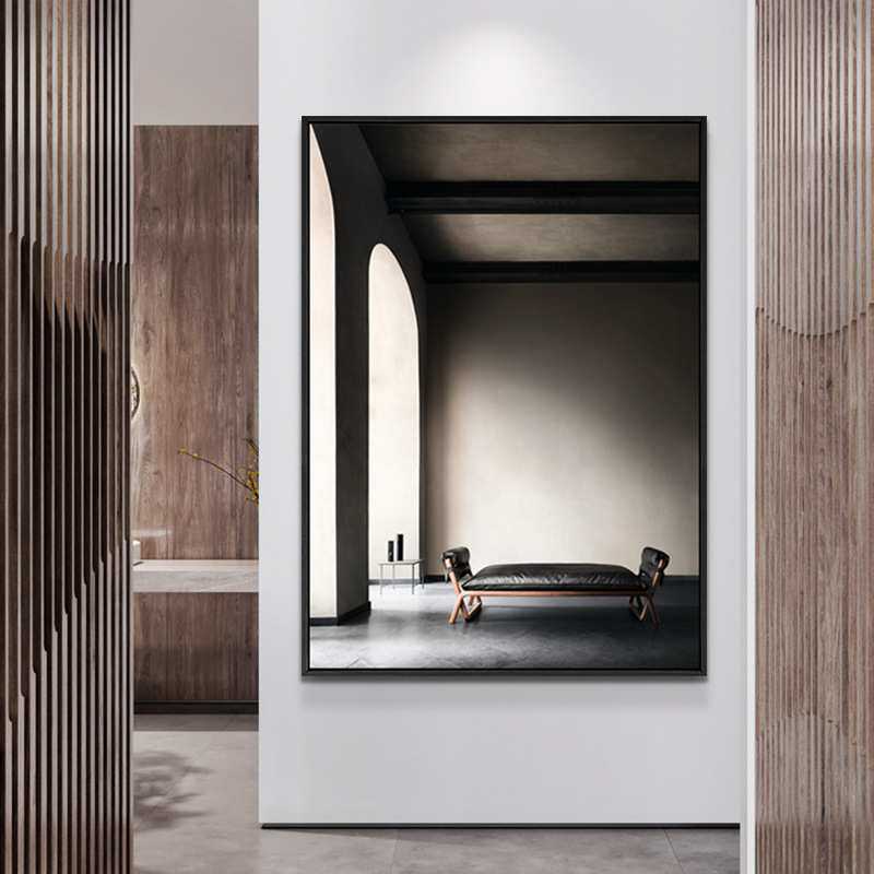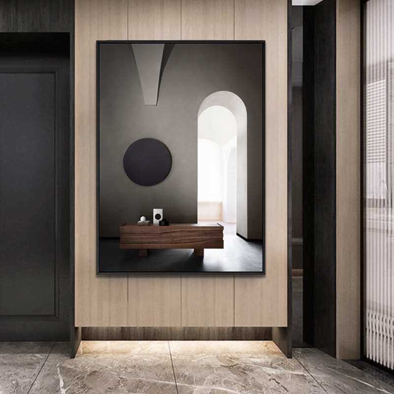 现代简约玄关装饰画极简风格沙发后面的挂画空间延伸艺术建筑壁画