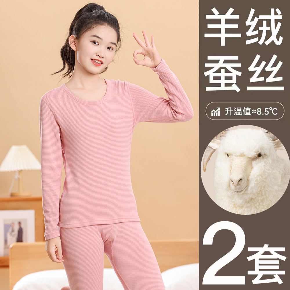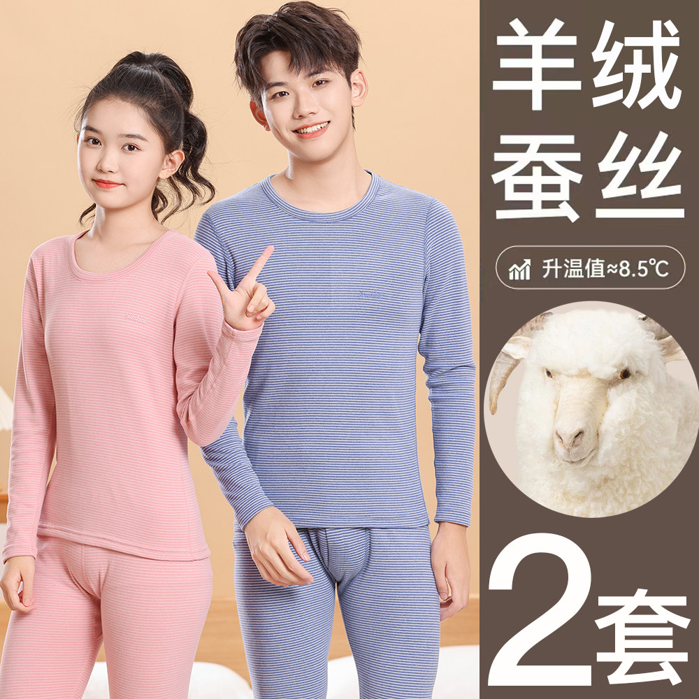 青少年保暖内衣套装初高中学生女德绒男加绒羊绒蚕丝大童秋衣秋裤