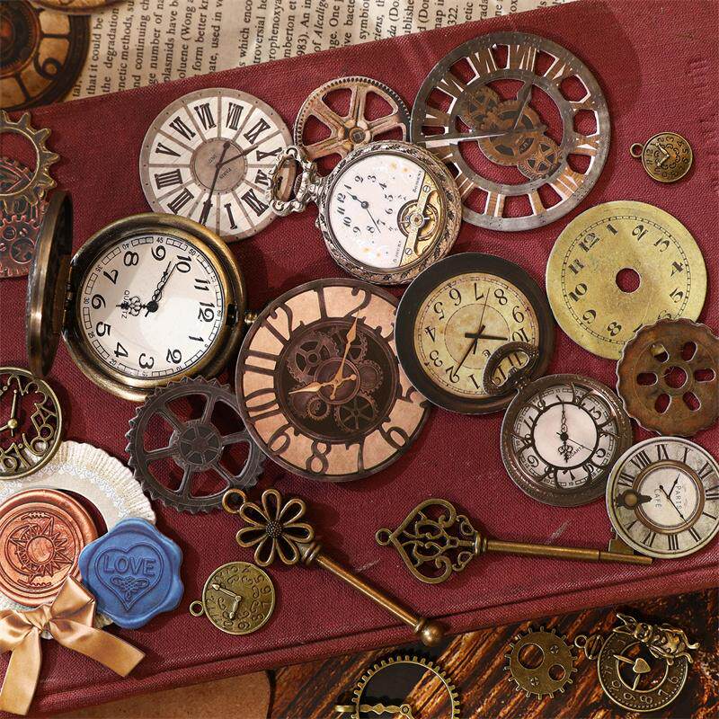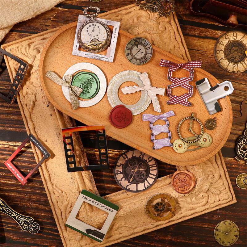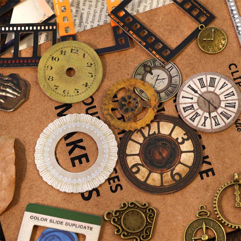 M|温暖手作硬卡贴纸包 复古胶片钟表齿轮夹子蕾丝镂空边框无重复