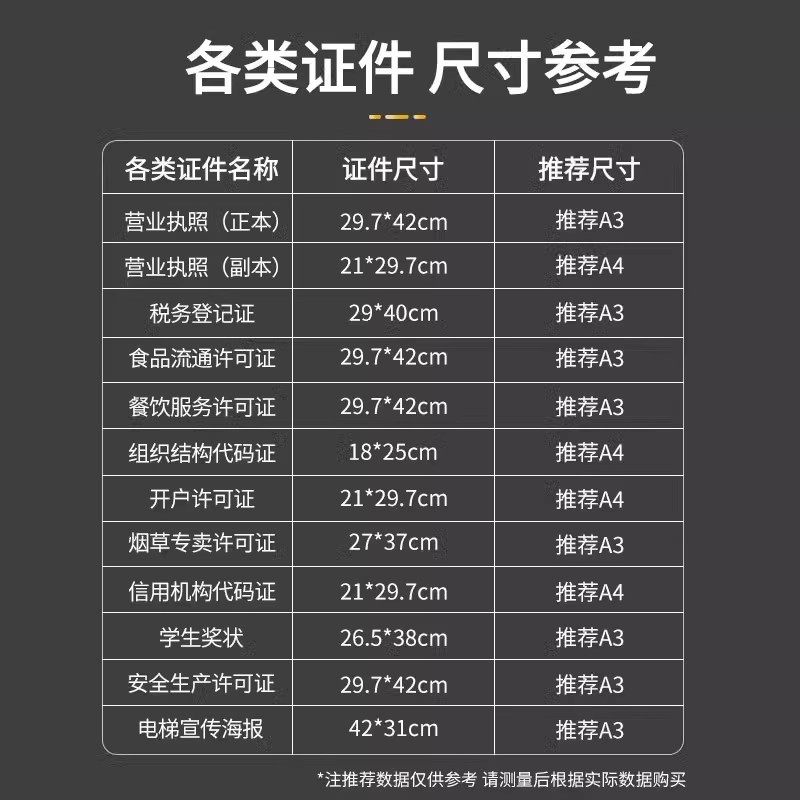 【加厚加质】新款营业执照保护套框架挂墙a3a4正副本展示相框画框磁吸个体工商户经营许可食品卫生证件保护套