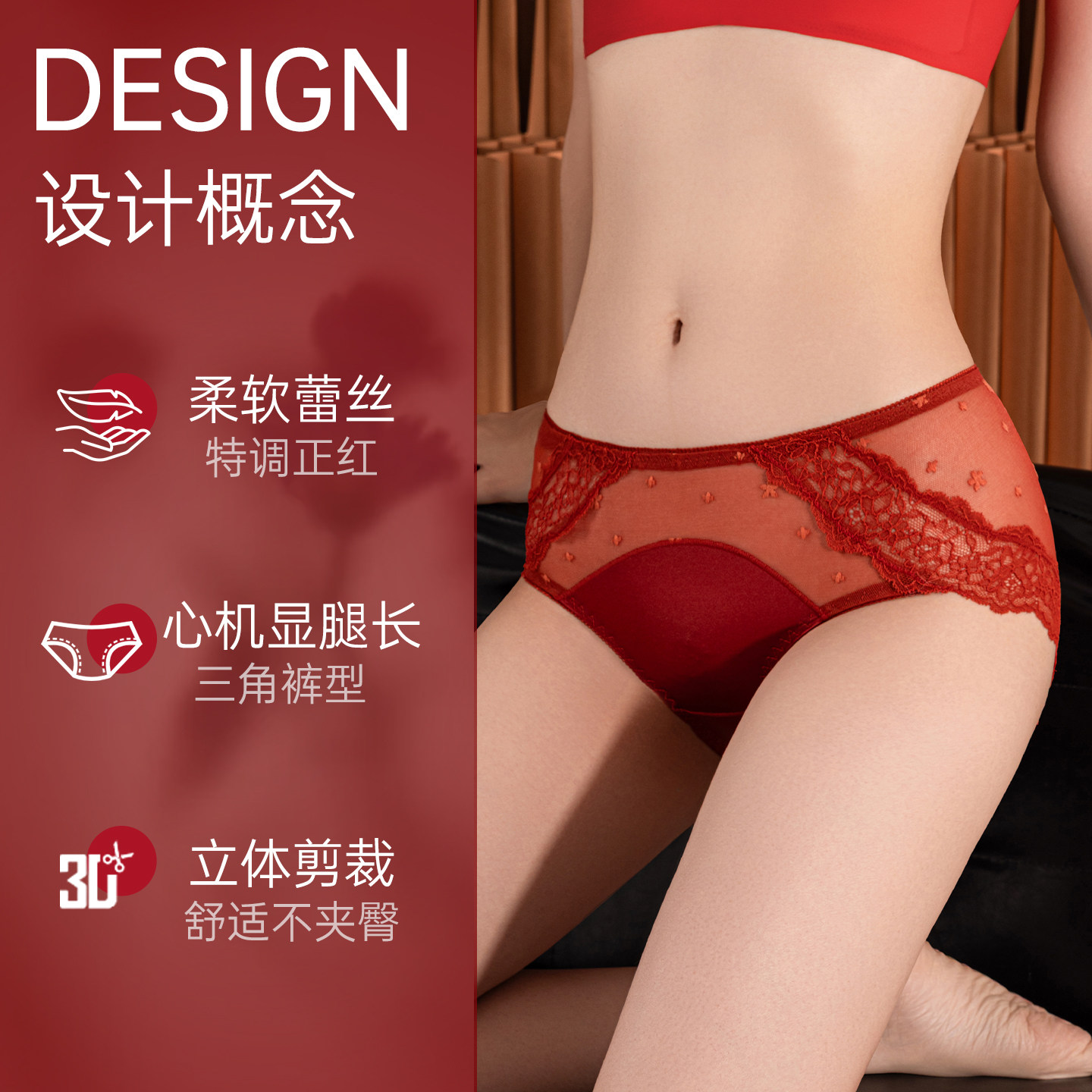 红内裤女士本命年结婚2026新款高级性感纯欲风红色蕾丝三角裤女生