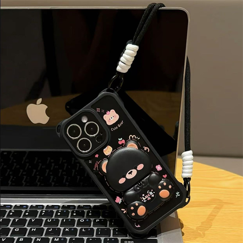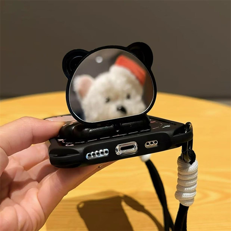 小熊挂绳镜子支架适用苹果16promax手机壳iPhone15新款华为mate60pro四角防摔pura70挂绳Reno13小米14vivos20