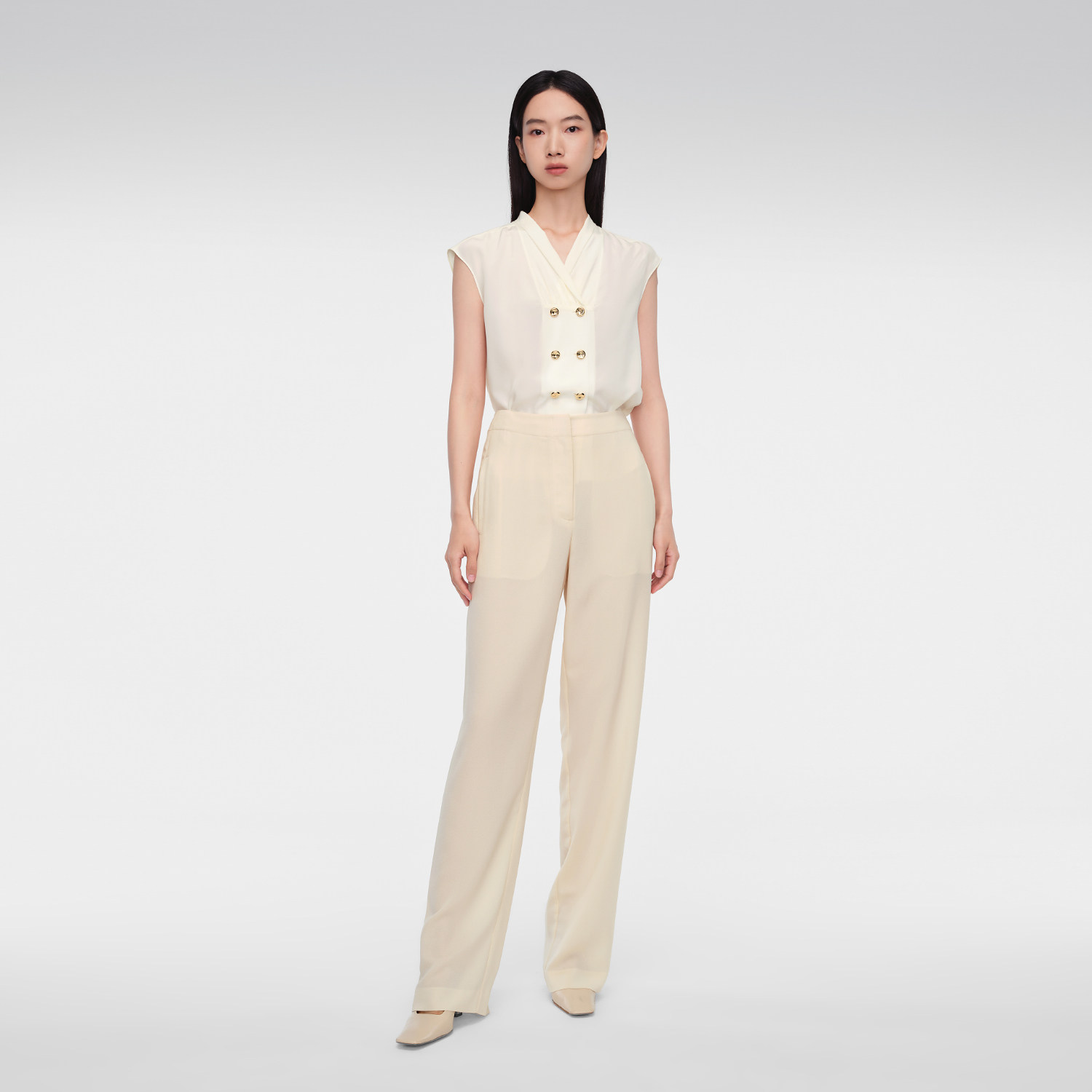 OVV春夏热卖女装醋酸绉纱面料简约直筒休闲通勤西裤