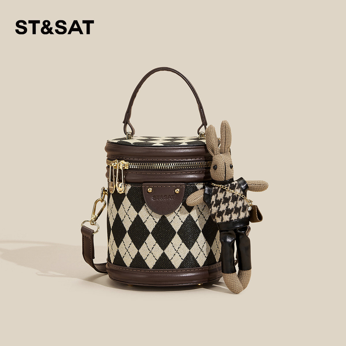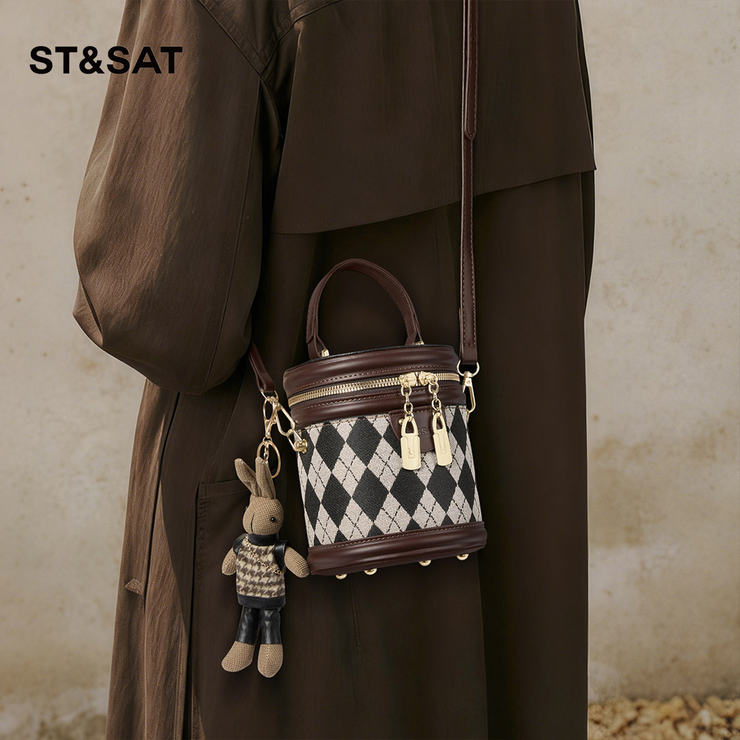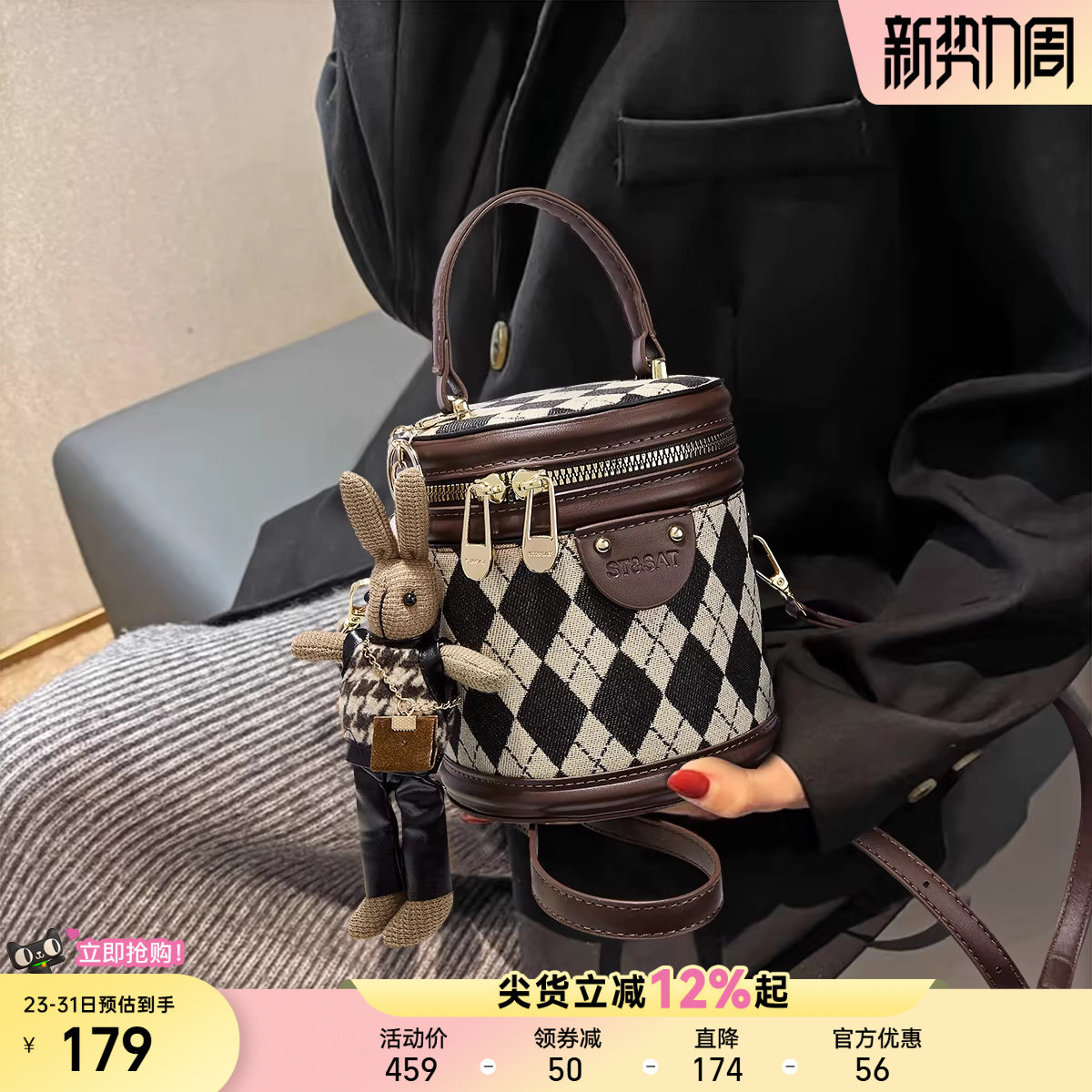星期六超火发财水桶包女2025秋冬复古潮手提时尚女式圆筒斜挎小包