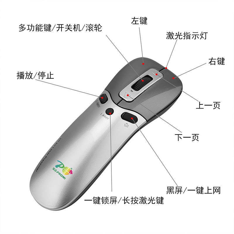 激光陀螺仪空中鼠标滑鼠悬空无线PPT翻页笔投屏静音体感遥控隔空A