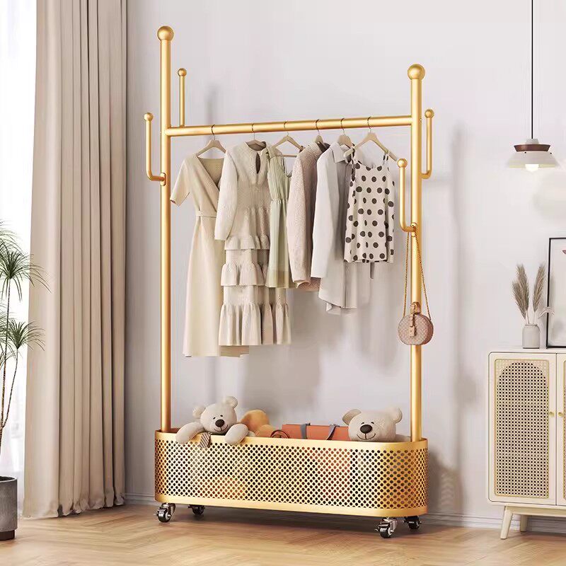衣架落地卧室奶油风挂衣架家用铁艺简易晾衣架室内客厅移动衣帽架