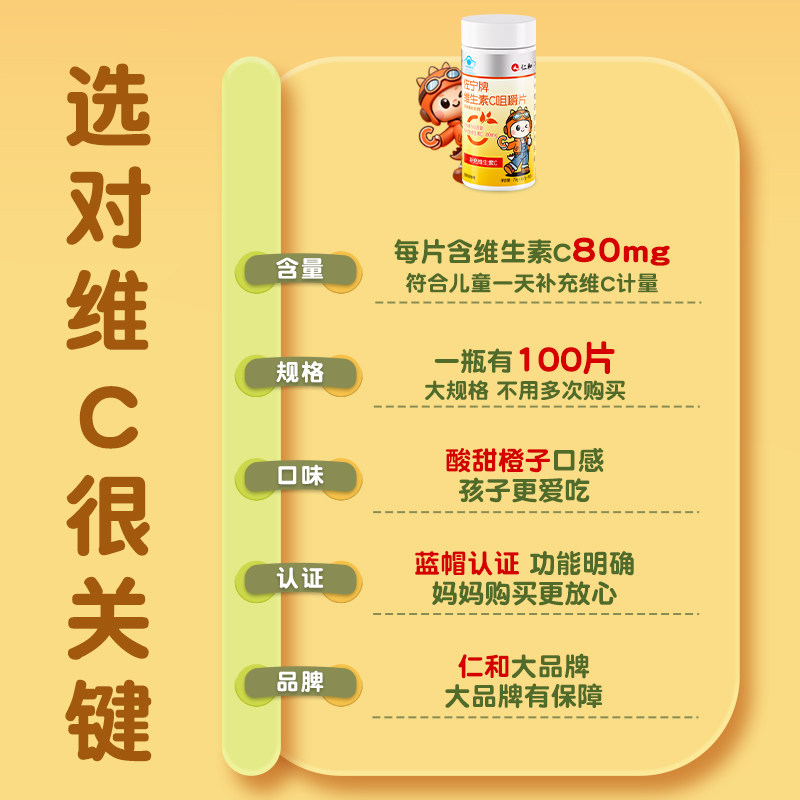 仁和维生素c儿童正品维c咀嚼片vc非泡腾片成人孕妇官方旗舰店