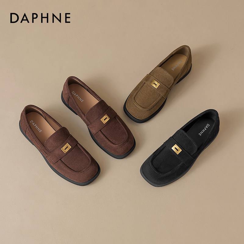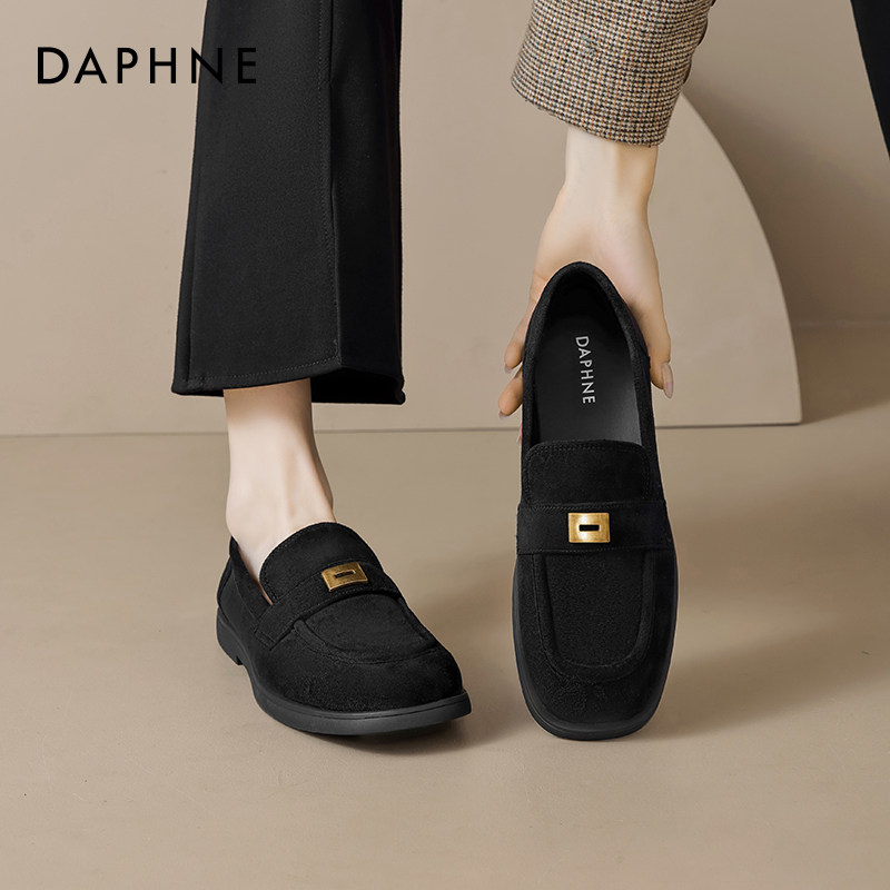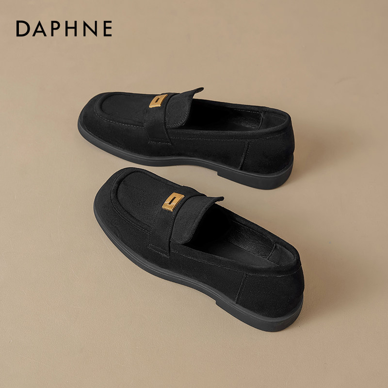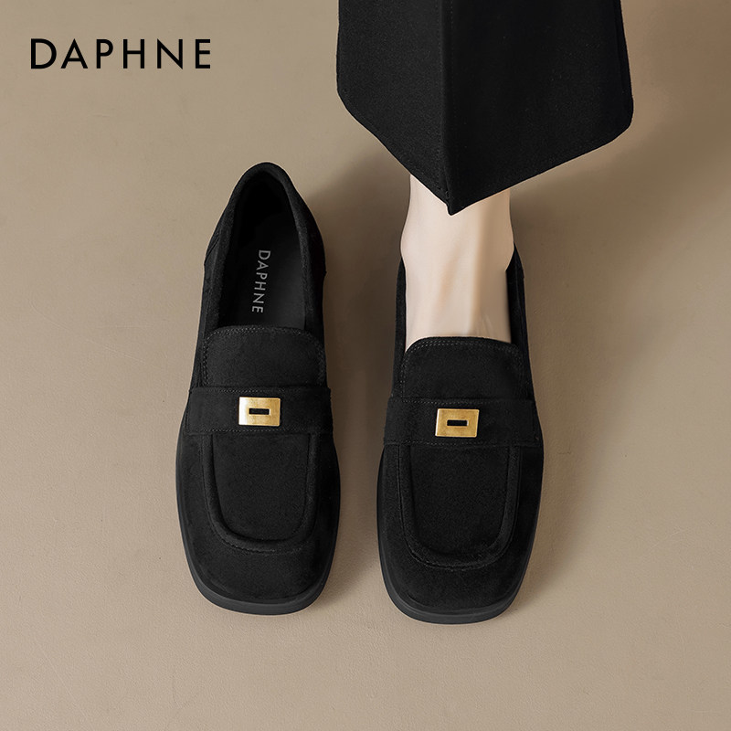 达芙妮黑色乐福鞋女2026新款春季软底复古通勤单鞋一脚蹬豆豆鞋子