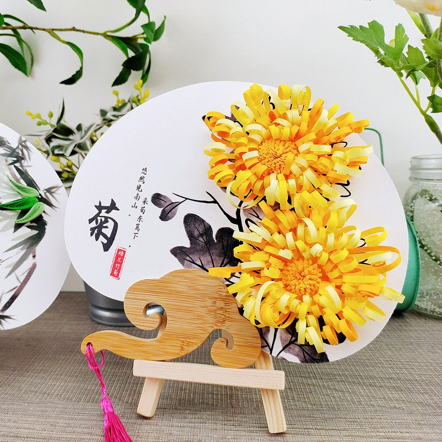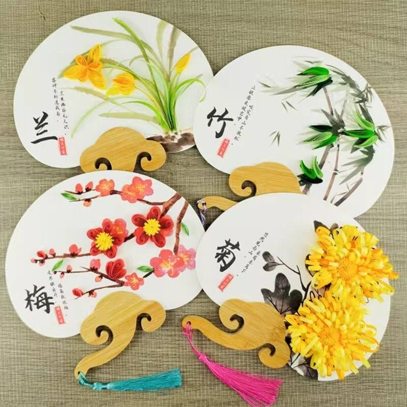 古风非遗亲子小学生古诗词梅兰竹菊花衍纸手工diy团扇套装材料包