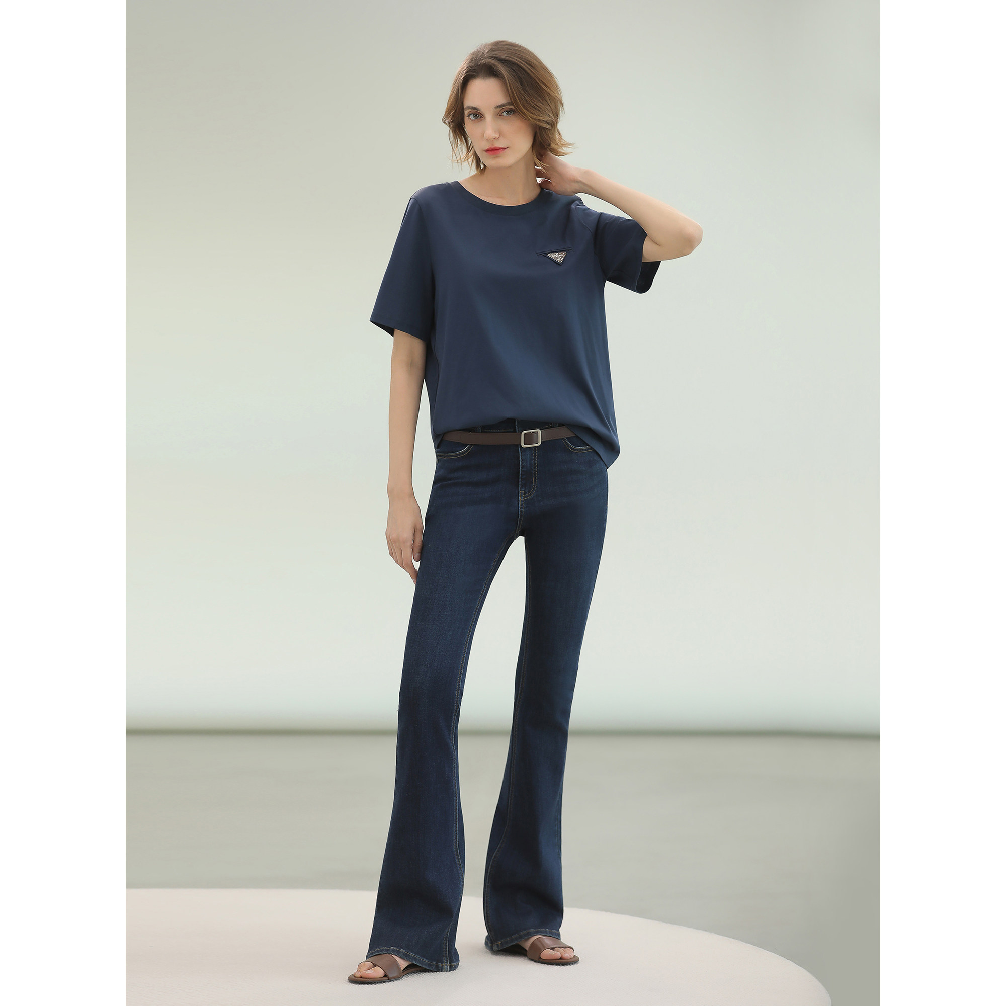 三福微喇牛仔裤女2025新款秋季小个子复古蓝色喇叭裤子女装504324