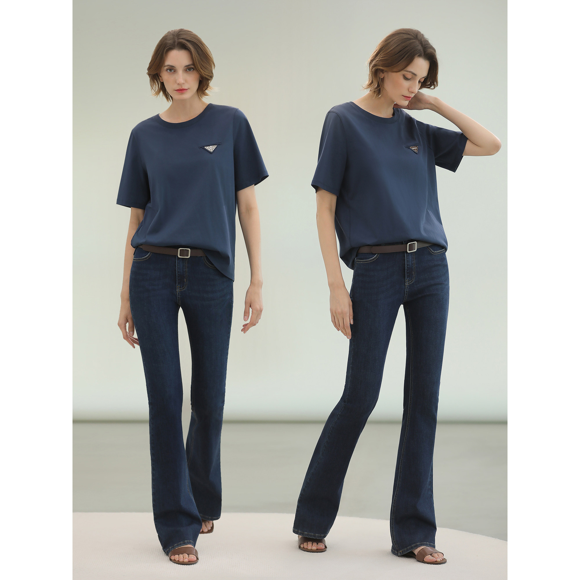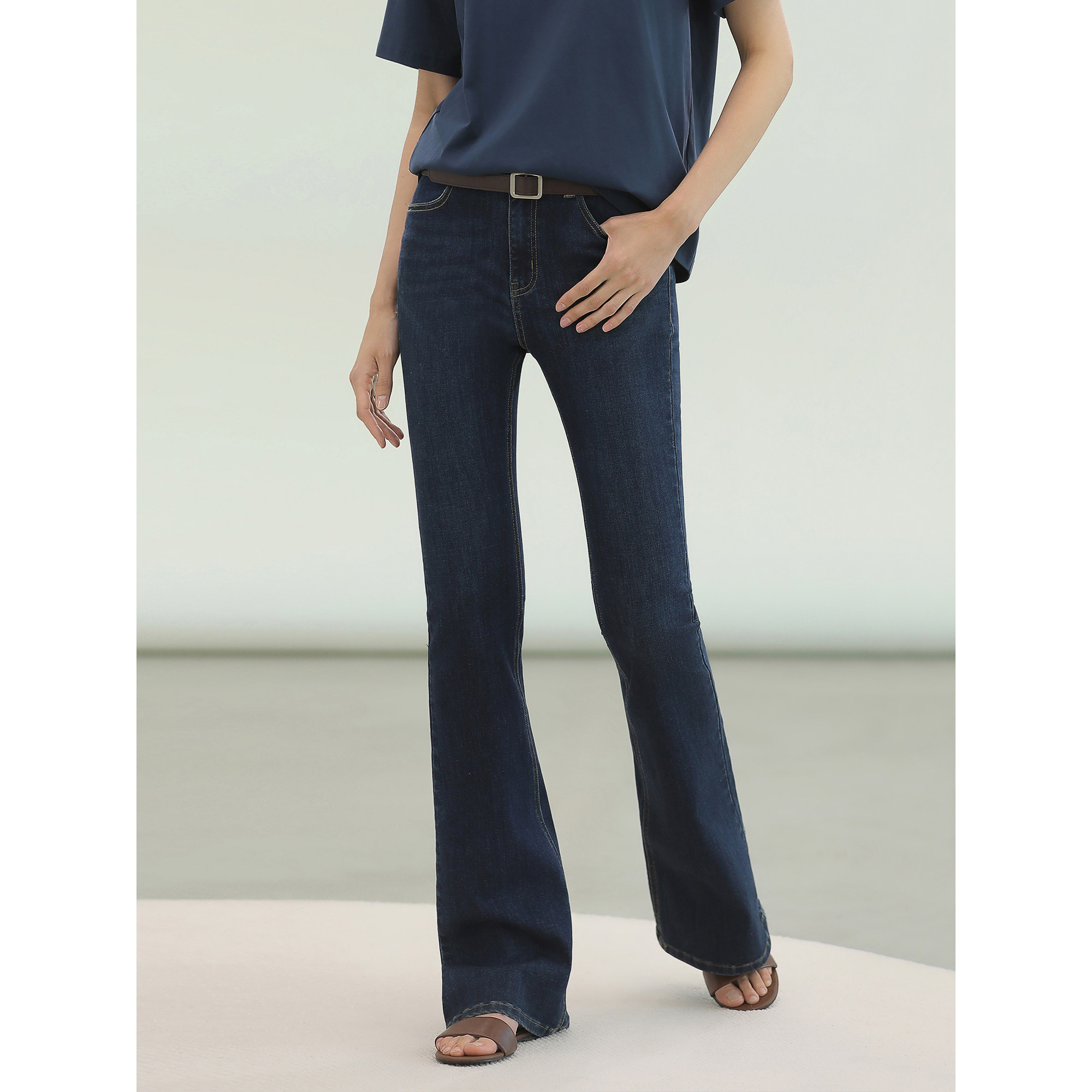 COCOBELLA复古丹宁水洗高腰紧身微喇牛仔裤女弹力休闲裤DN79
