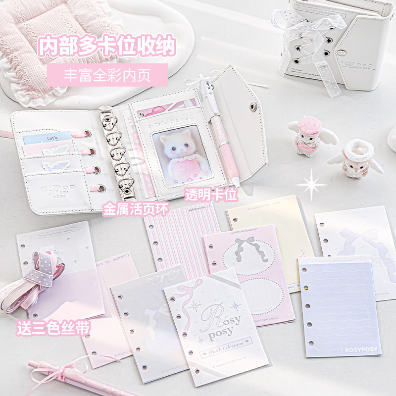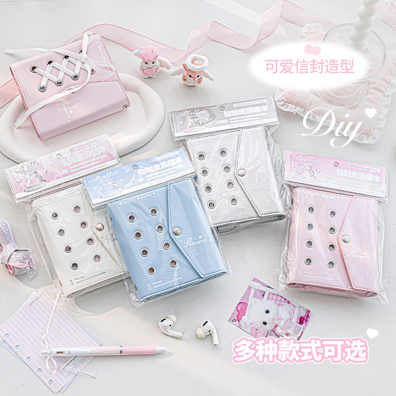 柔设芭蕾信封皮质痛本彩页手帐活页本高颜值女生M5绑带笔记本子