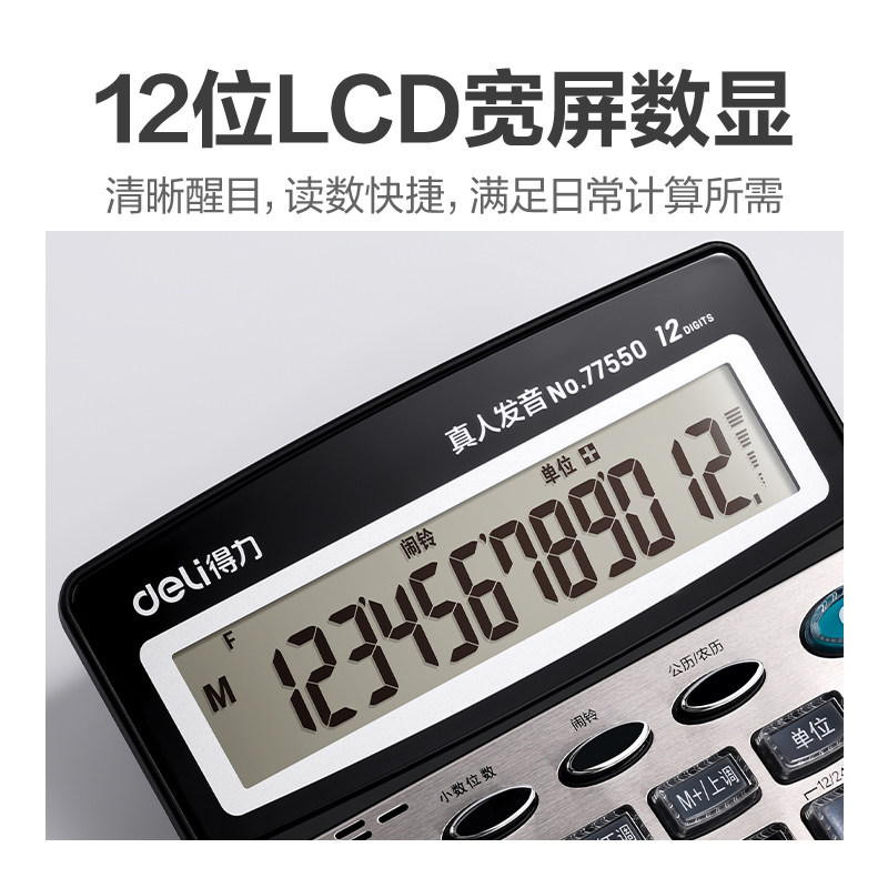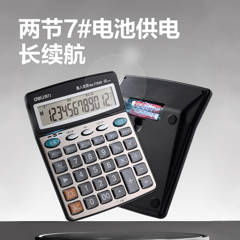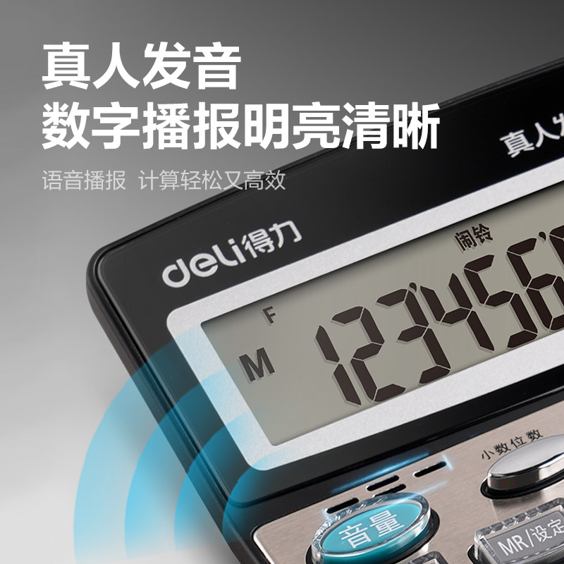 得力计算器真人语音太阳能大键盘大按键财务办公用双电源商用