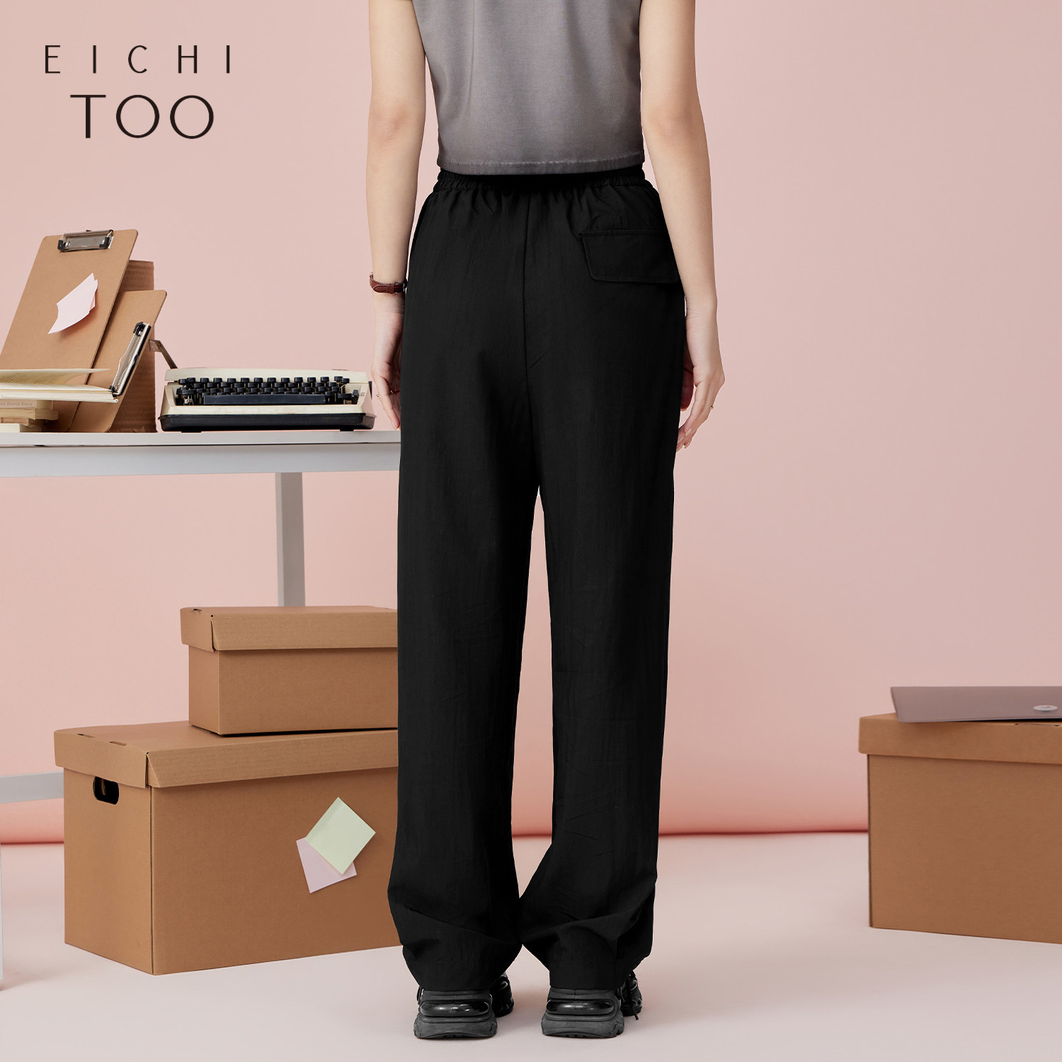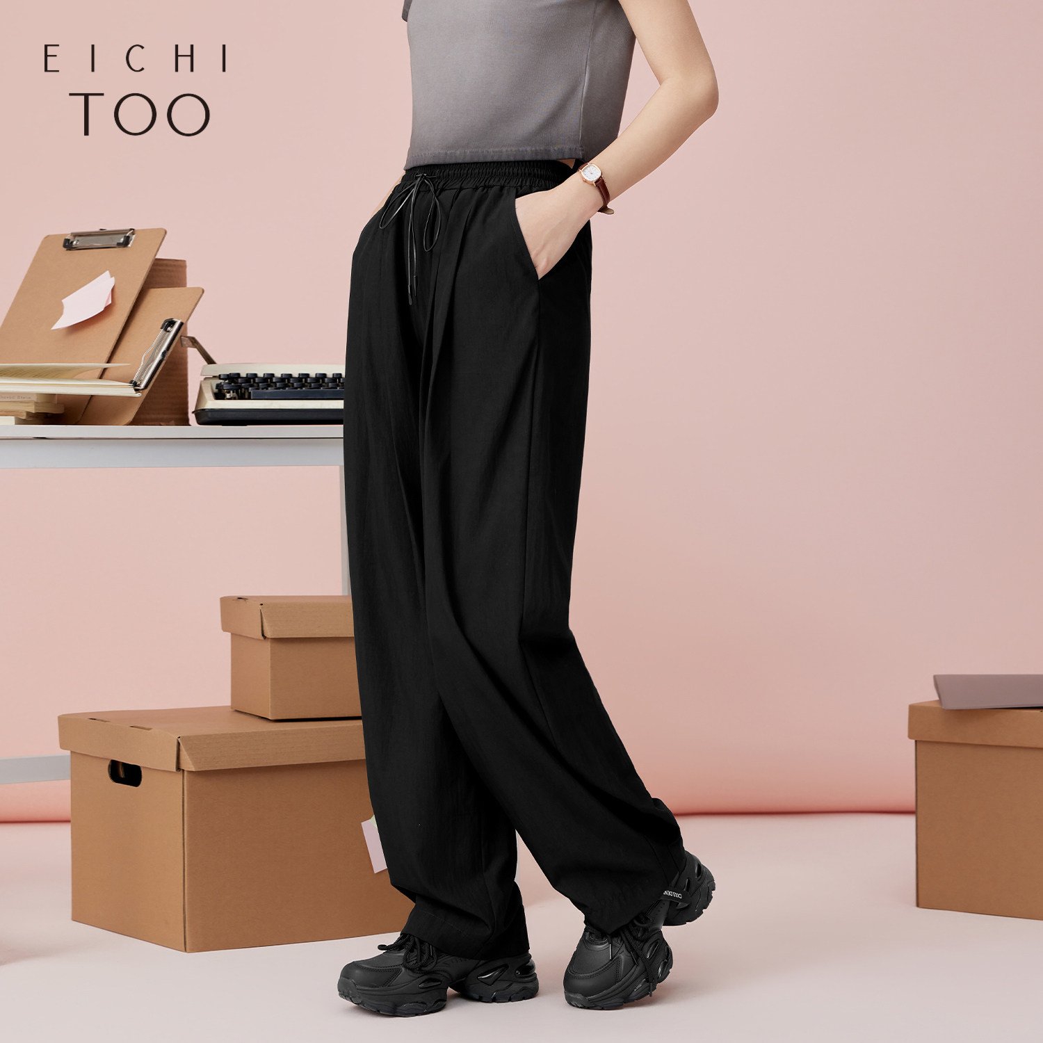 SIINSIIN直筒裤女春夏防晒裤薄款休闲显瘦速干运动裤黑色阔腿裤子