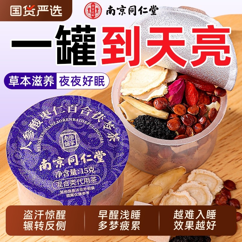 同仁堂酸枣仁百合茯苓茶睡眠茶助失神安中药材多梦质量差眠养生茶
