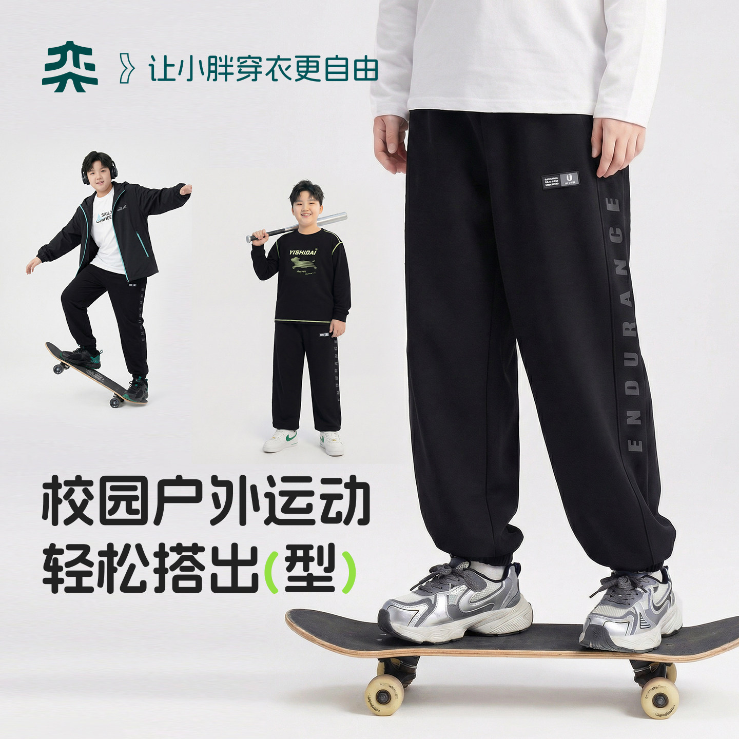 【一体腰轻松裤】奕时代胖男童裤子春秋中大童弹力抑菌运动裤宽松