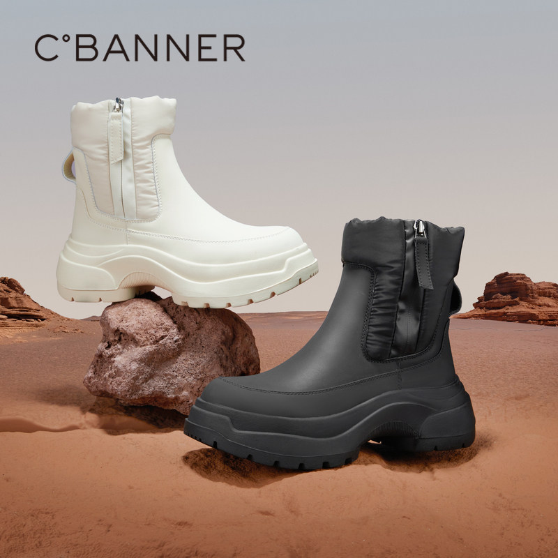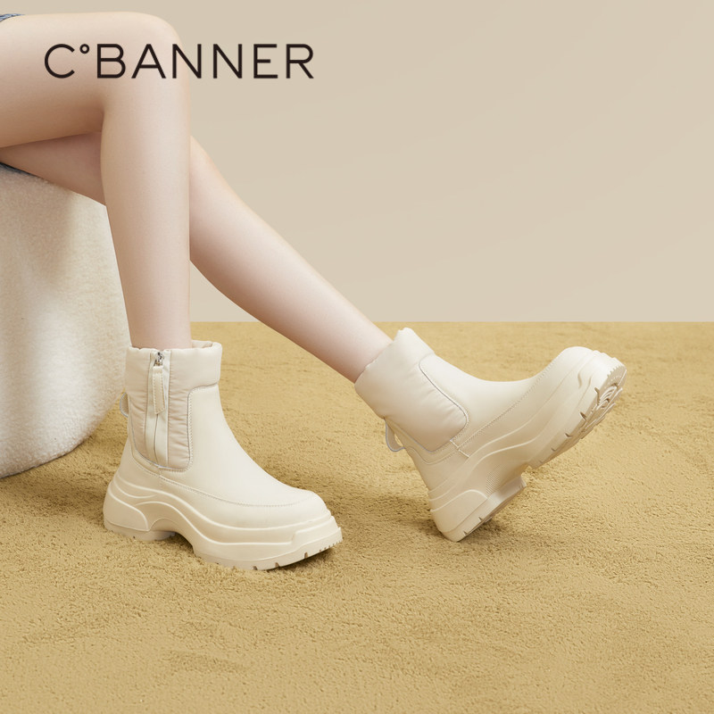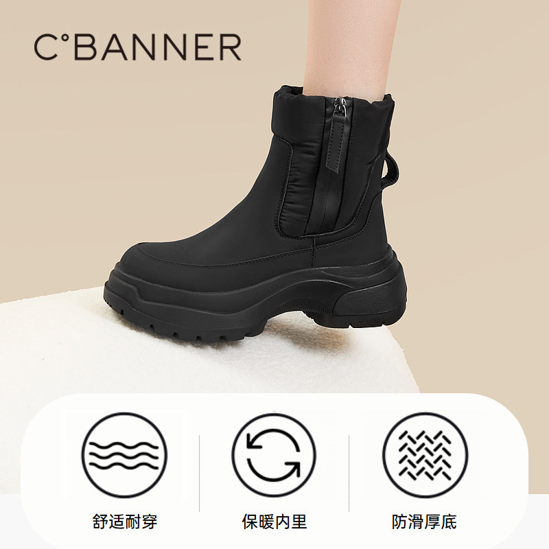 千百度厚底增高潮流雪地靴女鞋冬季新款时尚加绒保暖棉鞋短靴