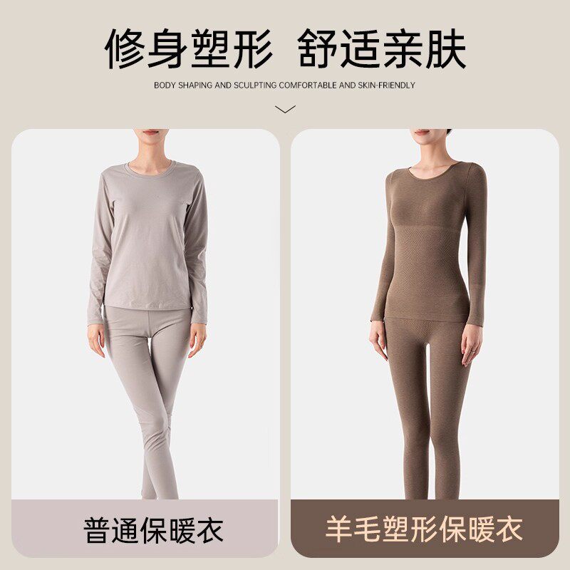 雅鹿保暖内衣女秋衣秋裤无痕修身羊绒发热显瘦内搭秋冬美体肌底