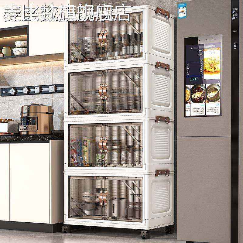 麦比梵家用微波炉橱柜储物柜厨房置物架调料厨房用品收纳柜子落地餐边柜摆件垫垫床笠拉车
