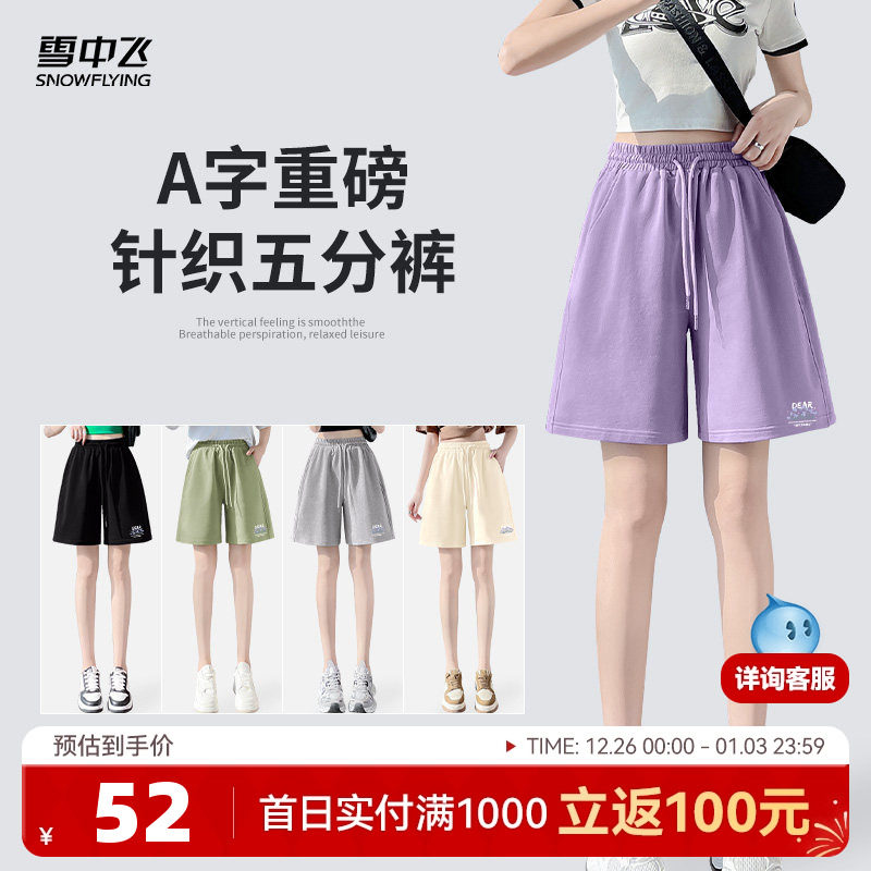 雪中飞短裤女夏季2025新款大码宽松阔腿中裤高腰显瘦运动五分裤PC