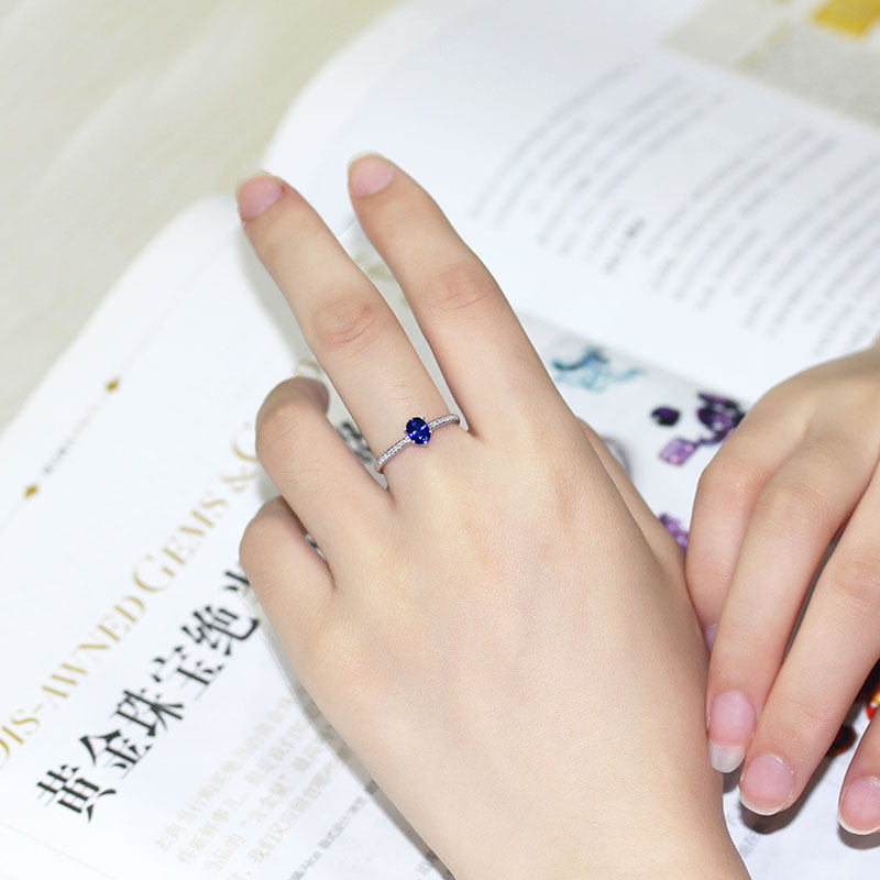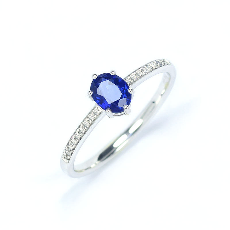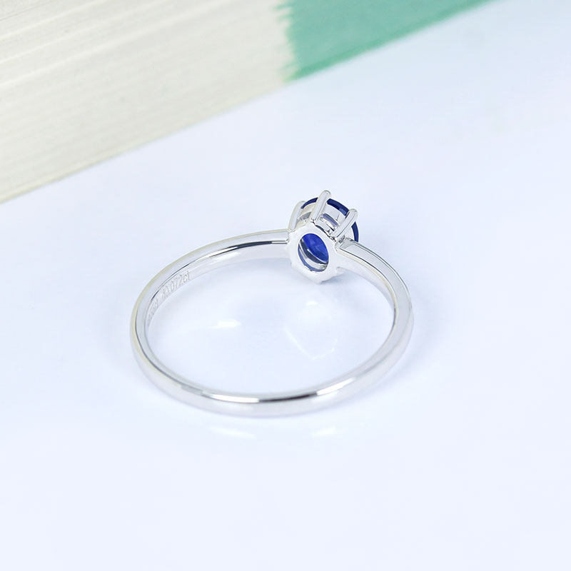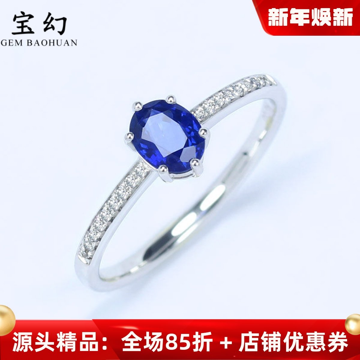 G18K白金斯里兰卡天然皇家蓝宝石六爪戒指 镶钻石简约手饰正品女