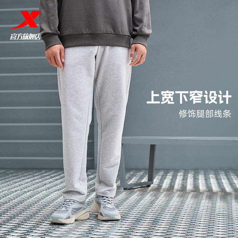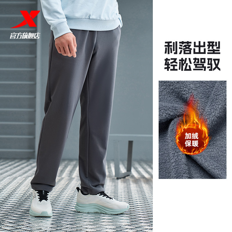 特步加绒卫裤男裤加厚秋冬款保暖缩脚裤直筒休闲裤百搭男子运动裤