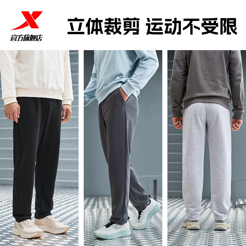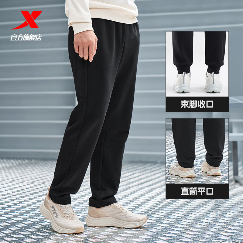 特步加绒卫裤男士2025年新款秋季男装裤子男裤直筒针织运动长裤