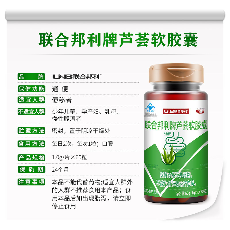 联合邦利牌芦荟软胶囊60粒成人男女中老年人便秘者芦荟通便胶囊