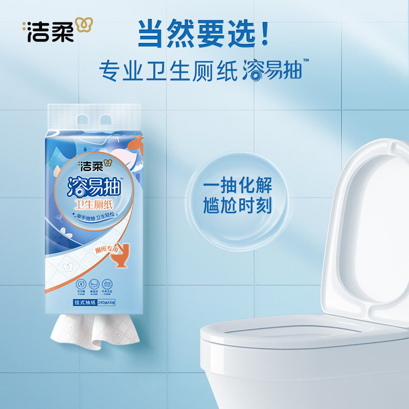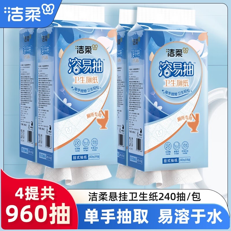 洁柔大包悬挂式抽纸整箱240抽4提手纸厕纸家用实惠装厕所卫生纸巾