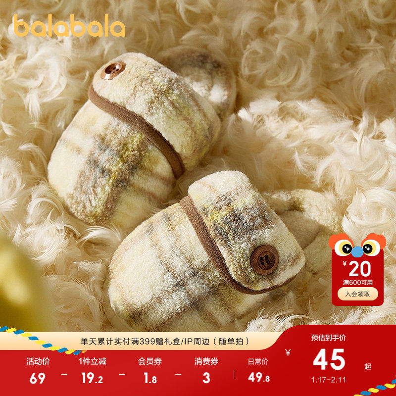 巴拉巴拉儿童棉拖鞋男童女童2025冬季新款宝宝室内加绒保暖家居鞋