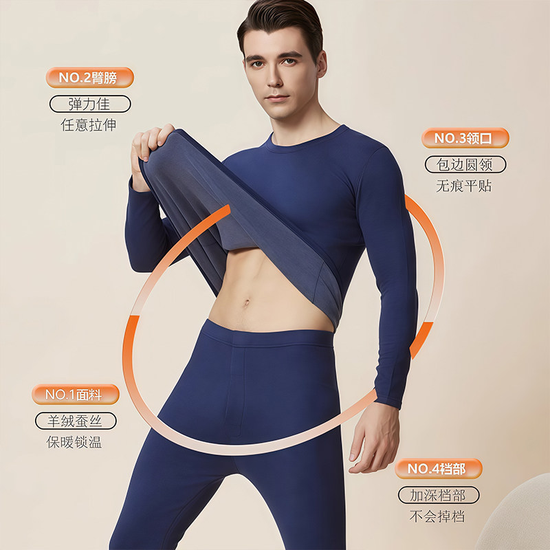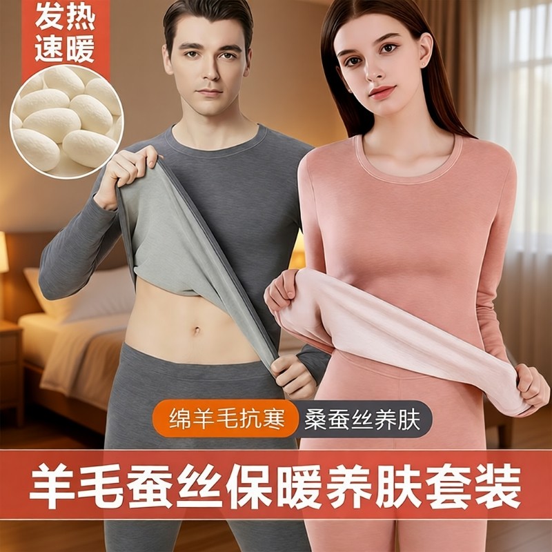 发热德绒秋衣秋裤女套装保暖保温内衣男秋冬季羊毛蚕丝打底贴身女