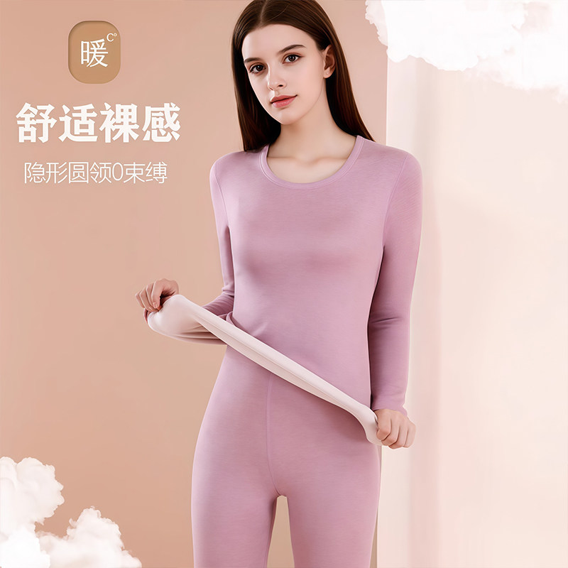 莹柔7057秋冬中厚棉秋衣秋裤圆领修身保暖内衣棉毛衫基础打底套装