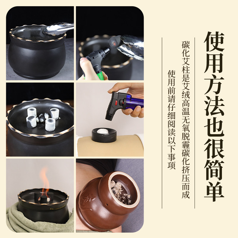无烟艾碳黑色家用陈年艾温阳艾灸罐无烟碳化艾柱美容院专用柱