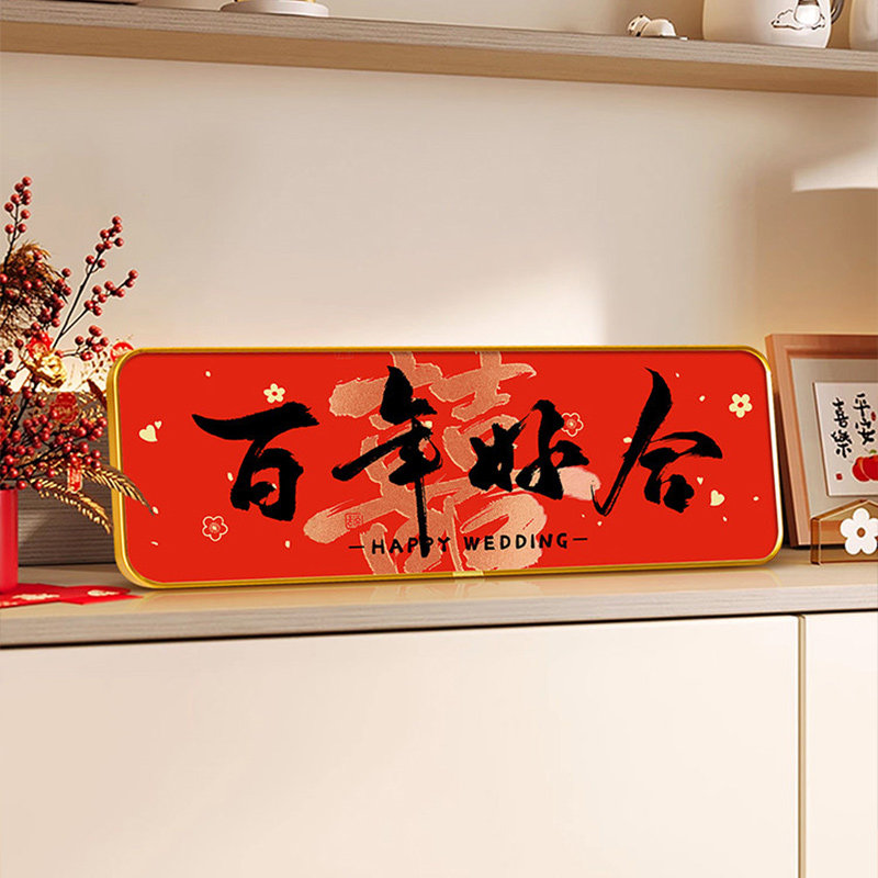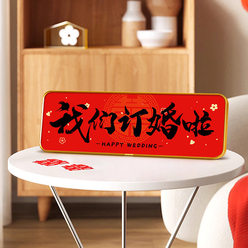 我们订婚啦文字画摆台画入户玄关柜摆件画新年婚礼装饰画结婚客厅
