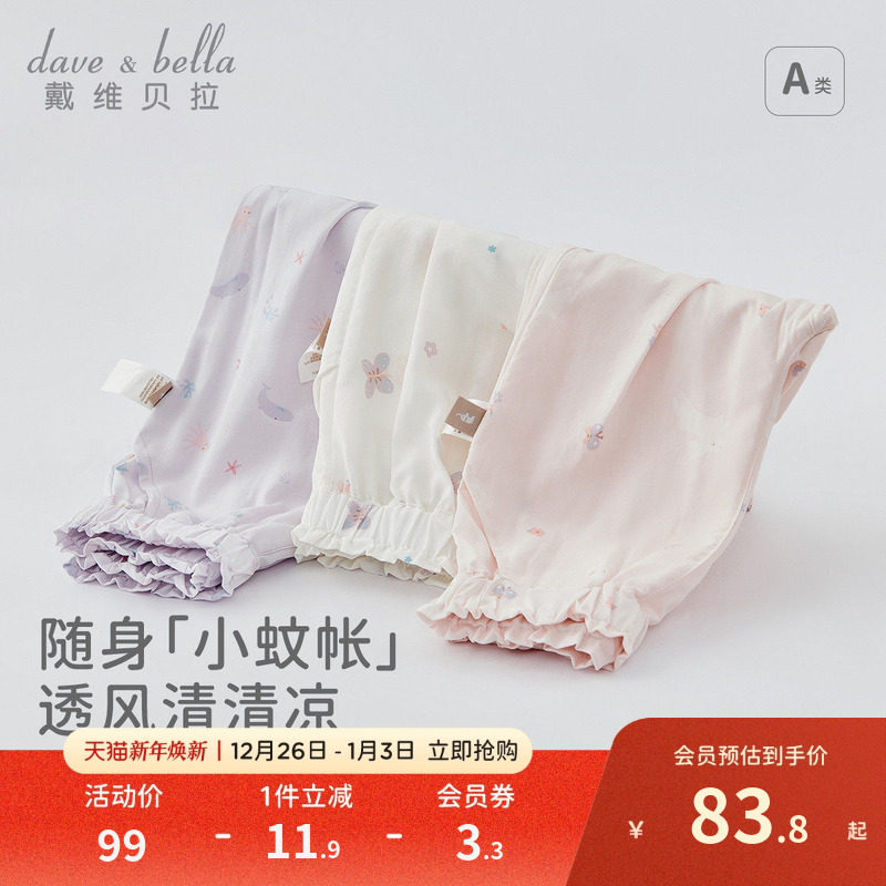 戴维贝拉儿童防蚊裤女童裤子宝宝婴儿长裤女2025夏季新款抗菌凉感