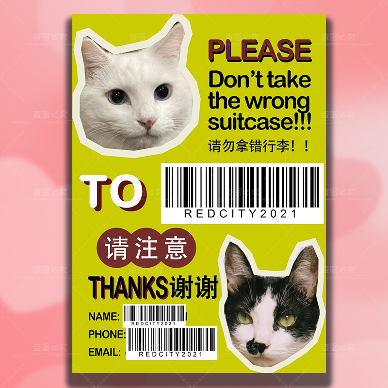 宠物行李箱贴纸防水不留胶大号整张出国专用防丢防拿错标识贴纸