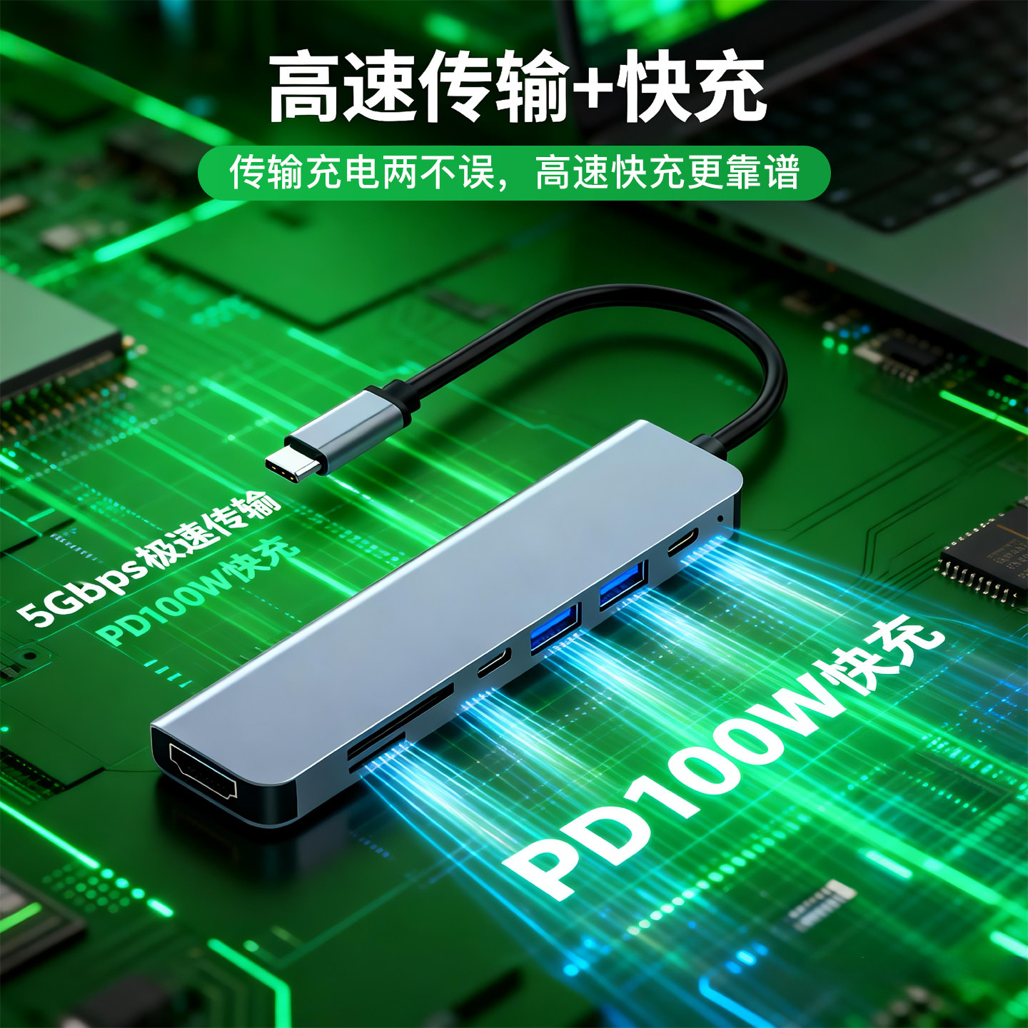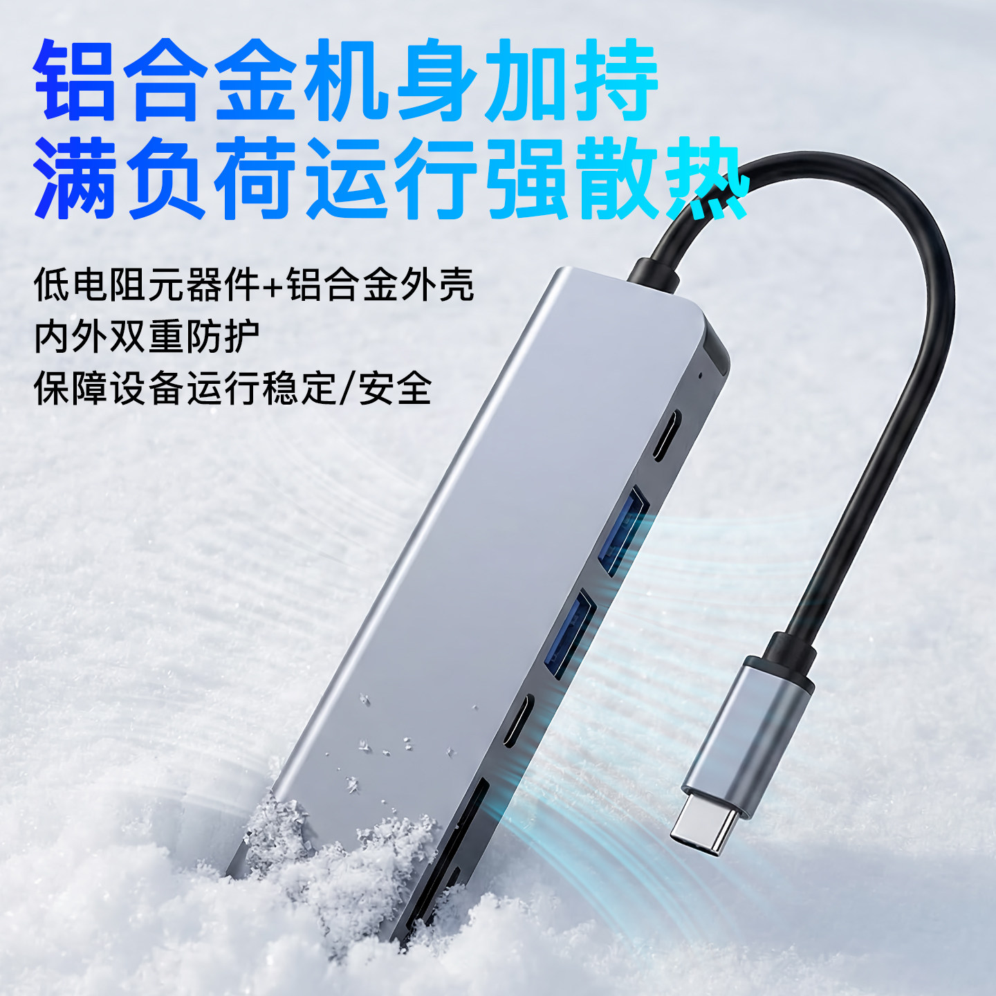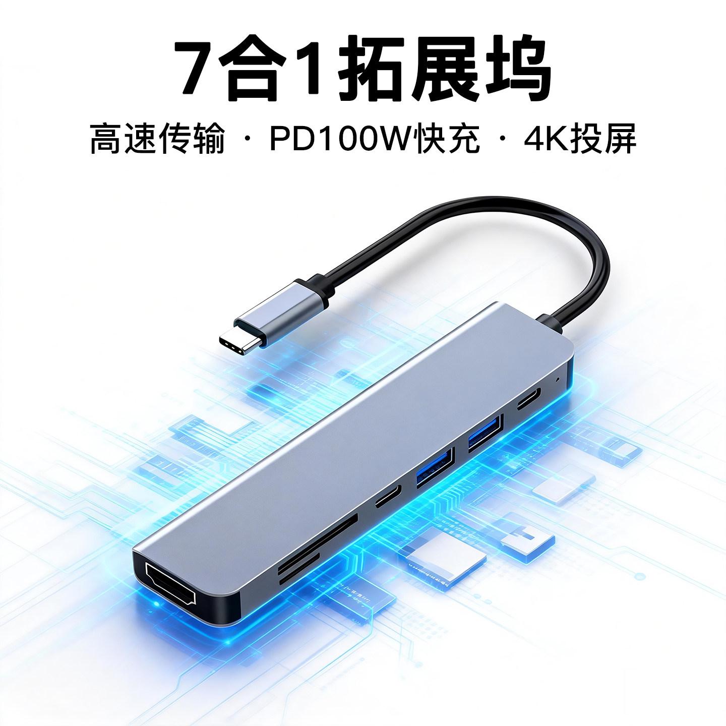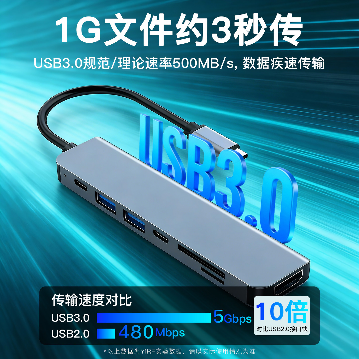 YiRF拓展坞type-c扩展usb转换分线器hdmi投屏hub集线器网线多口转接头多功能适用苹果平板ipad小米华为笔记本