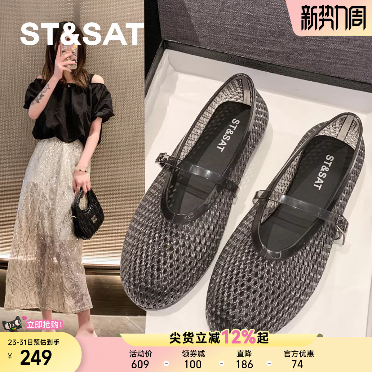 星期六网红镂空平底单鞋女士2025新款夏季透气仙女风软底果冻凉鞋