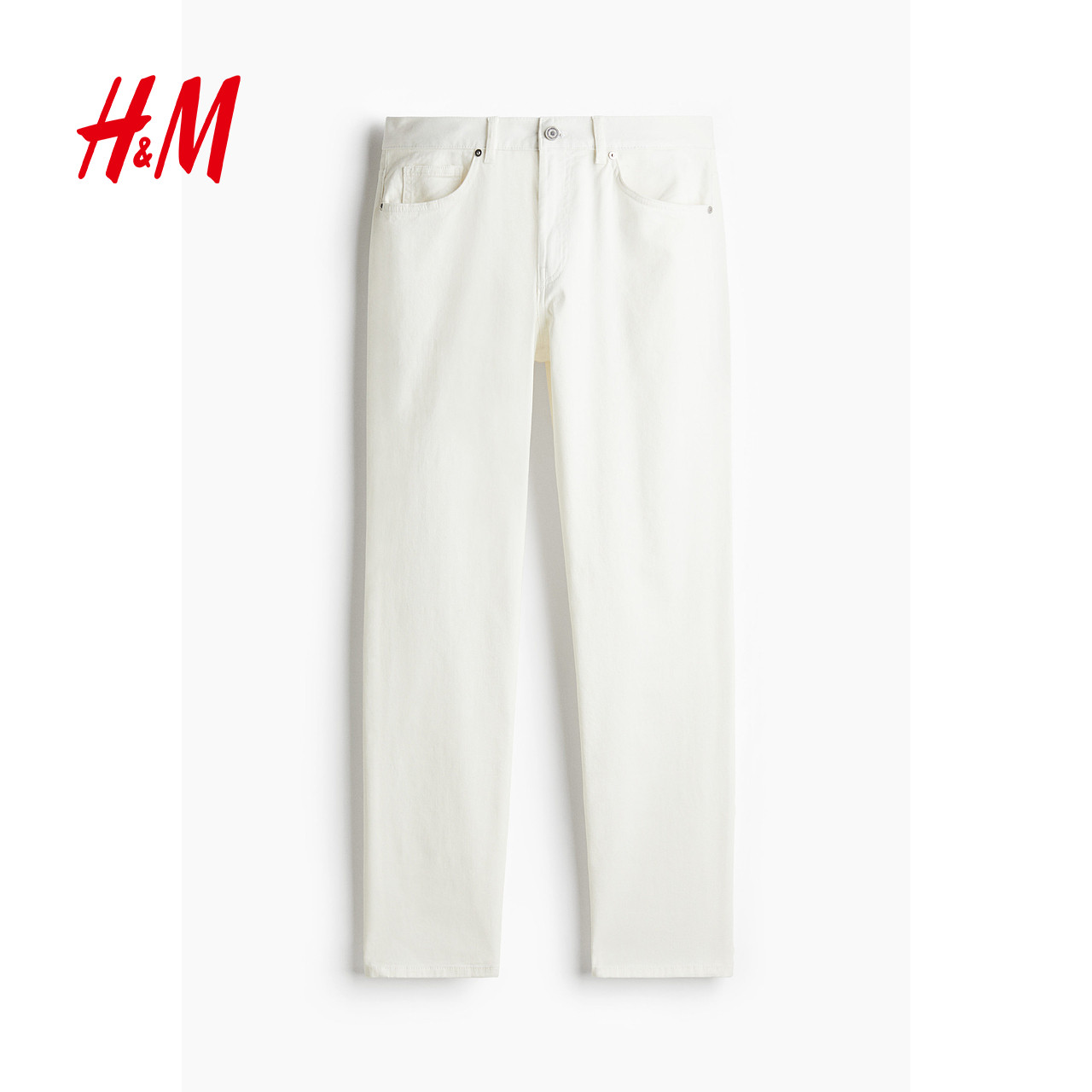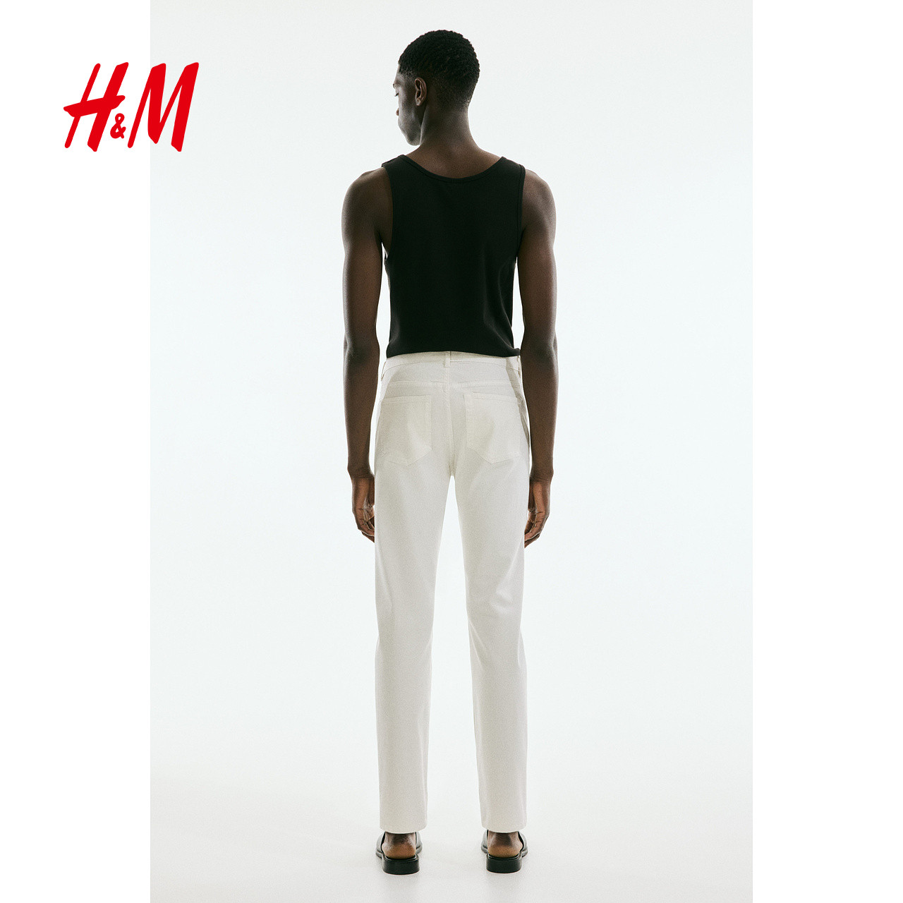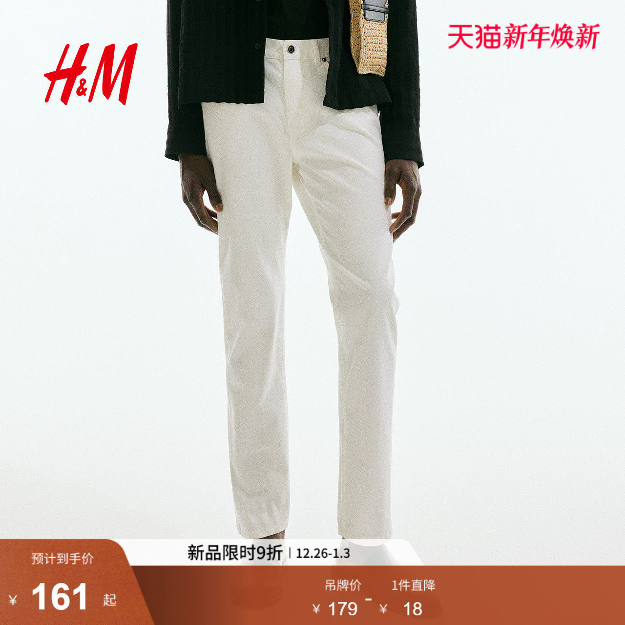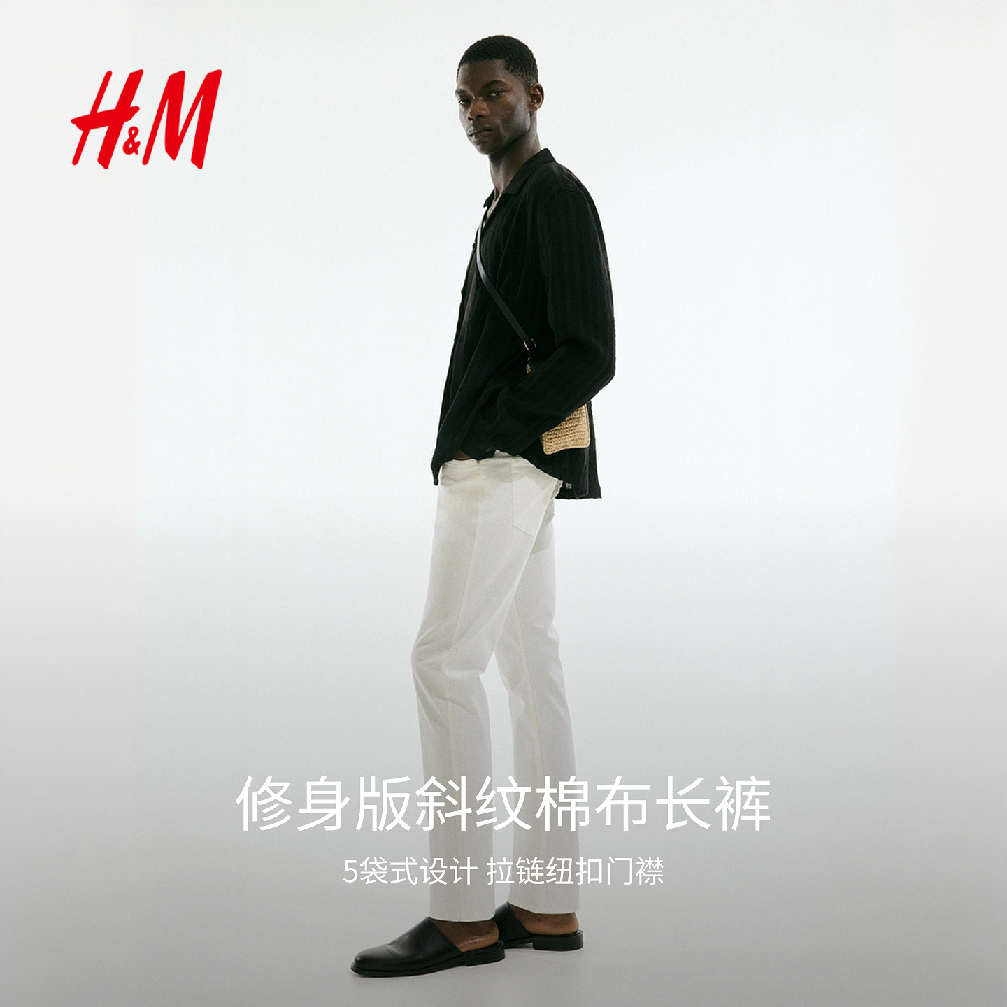 HM男装休闲裤冬季斜纹棉布简约英伦合身长裤1074402