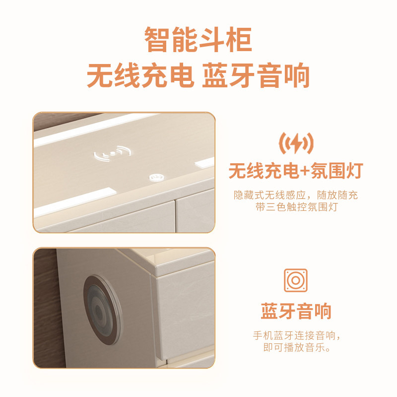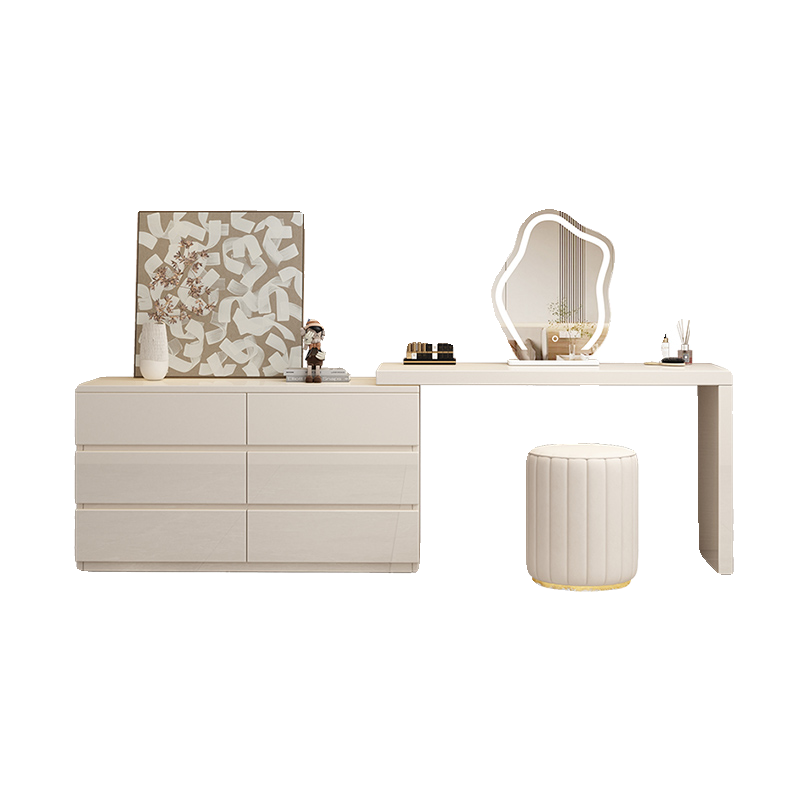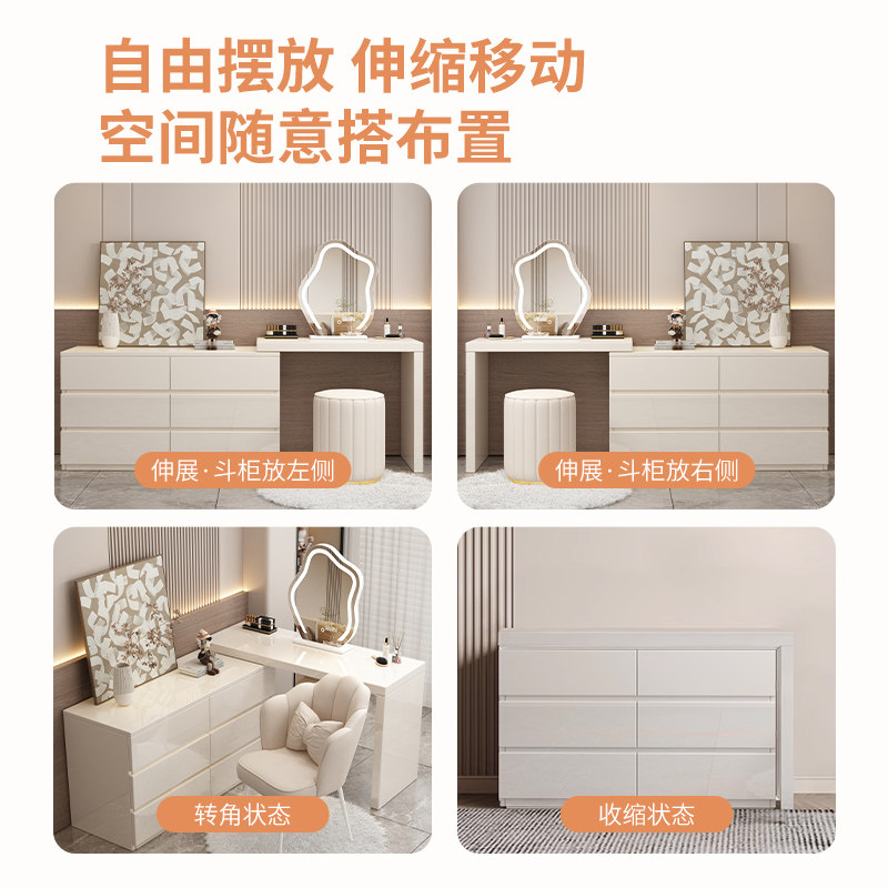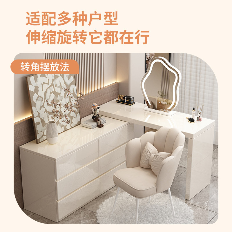 奶油风梳妆台实木岩板卧室现代简约智能化妆桌轻奢收纳一体化妆台