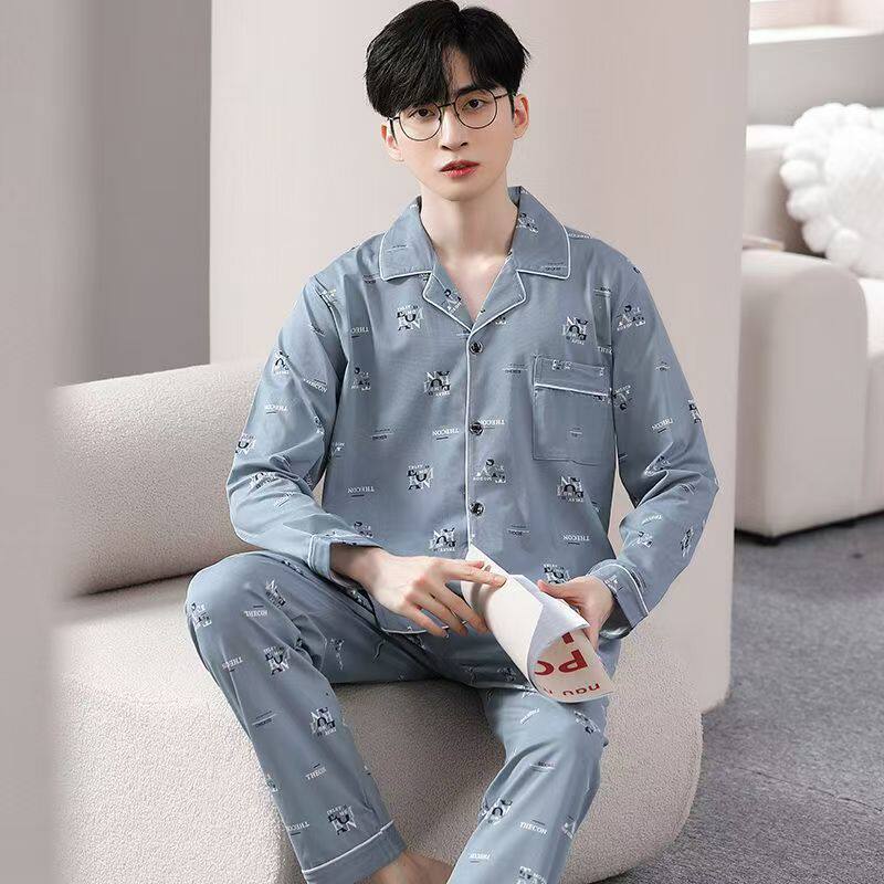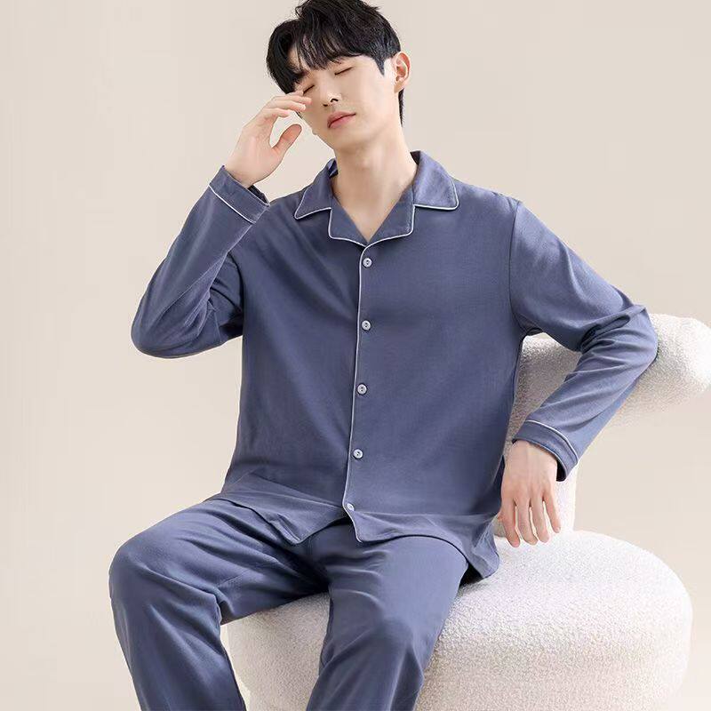 男士睡衣春秋季休闲简约纯棉长袖大码家居服全棉高档套装夏居家