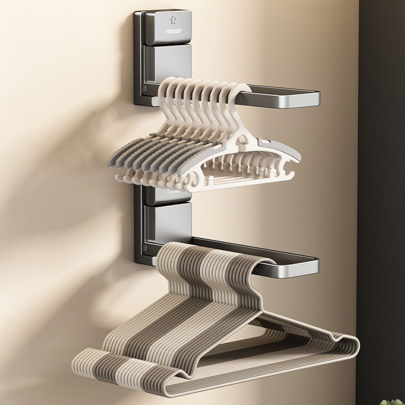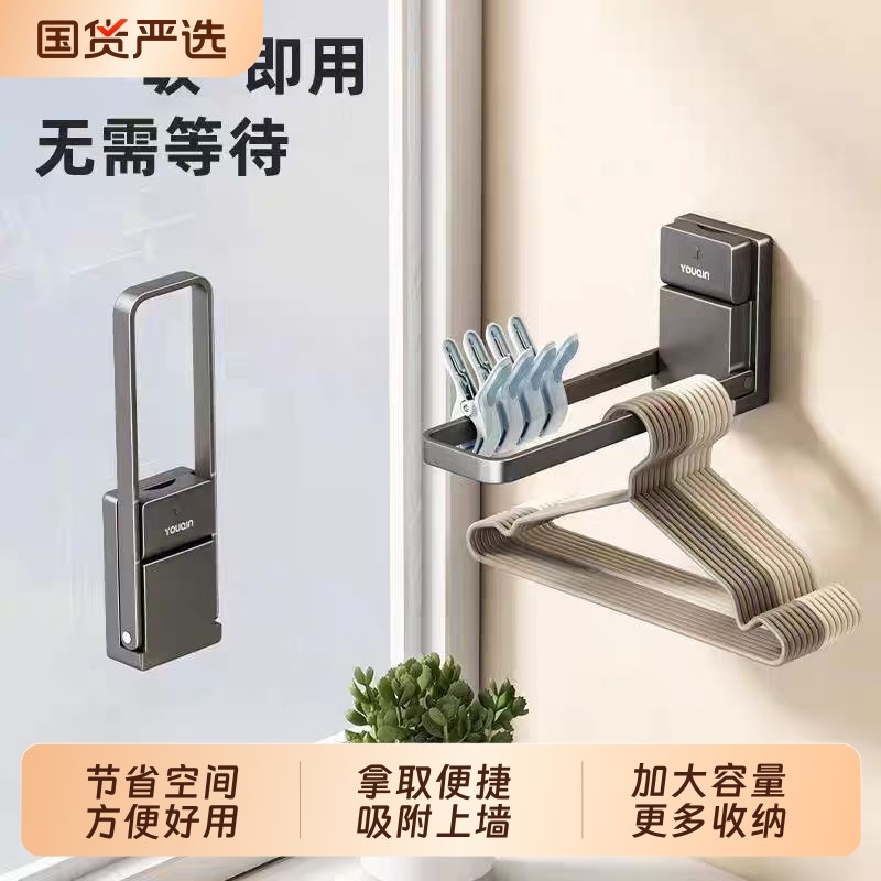衣架收纳神器可伸缩免打孔阳台壁挂式多功能整理置物架家用晾衣架