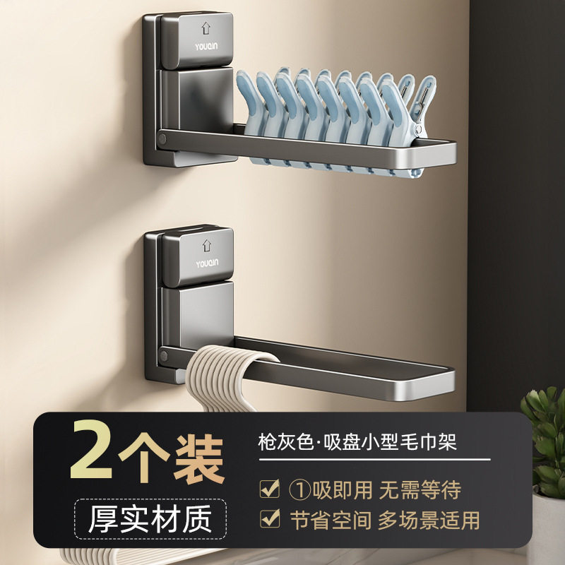 吸盘阳台衣架收纳神器免打孔挂钩伸缩挂衣架置物架衣柜浴室上墙
