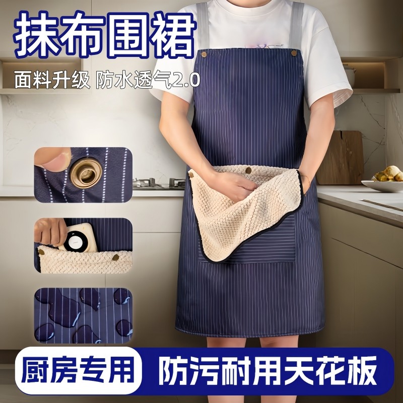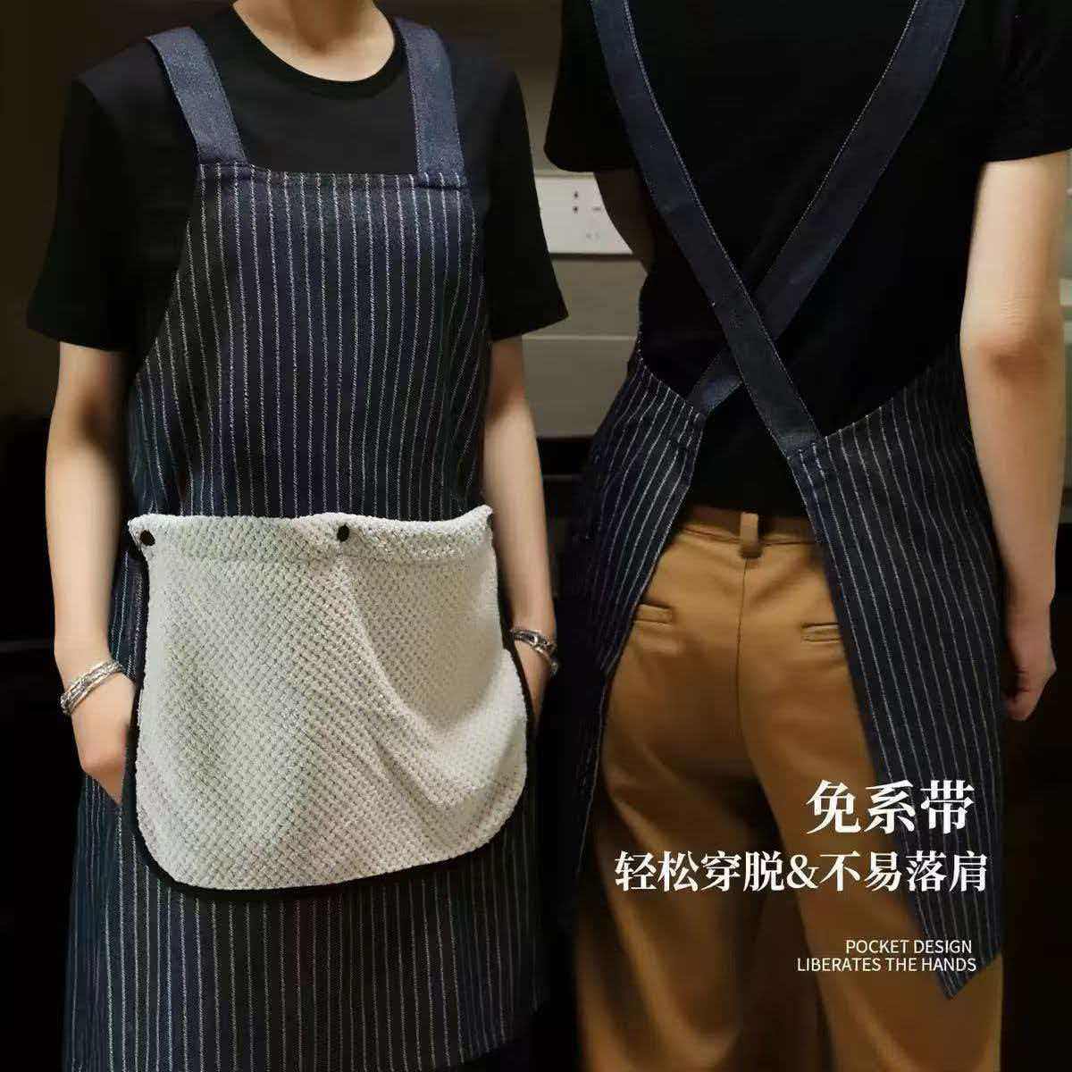 可拆卸加厚擦手巾围裙2025新款防水防油家用帆布年轻高级风交叉