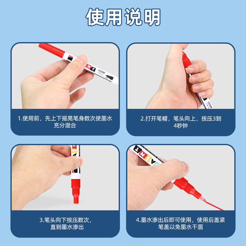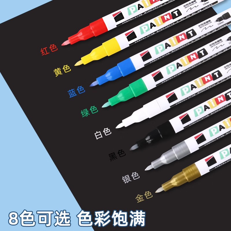 细头水性油漆笔记号笔防水防油不掉色工地专用黑白红金色高光补漆画划线瓷砖木头金属塑料玻璃鞋子涂鸦签名字