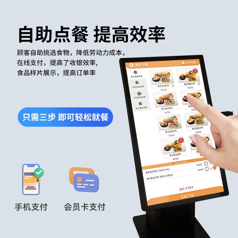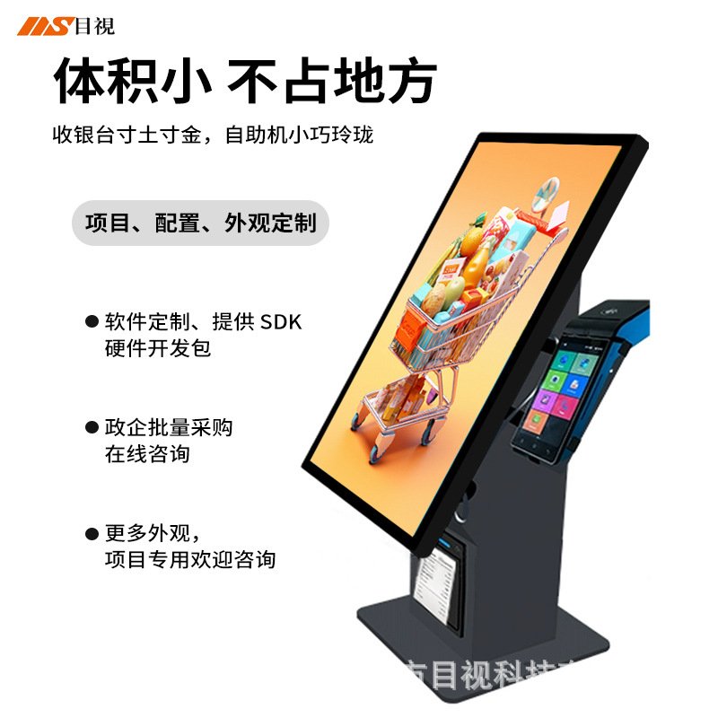 kiosk21.5寸触屏自助服务终端机餐饮便利店扫码收银机打印结算机