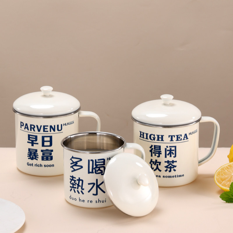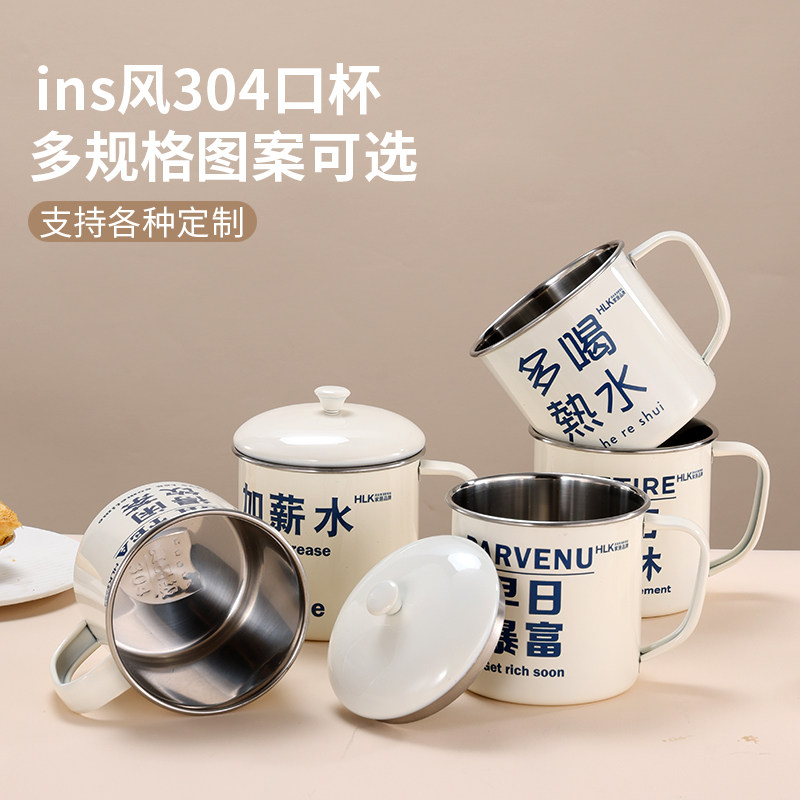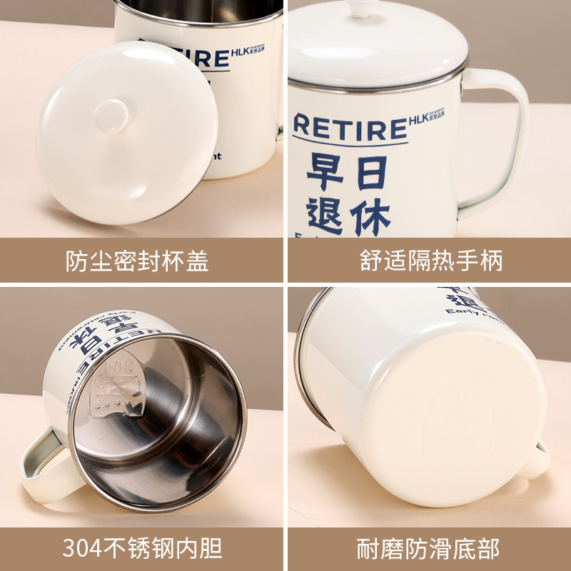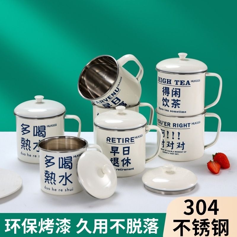 带盖经典304不锈钢食品级防摔水杯老式创意复古怀旧马克杯茶缸子